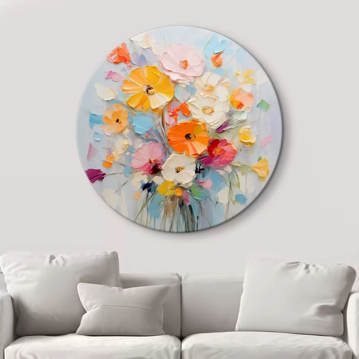 Ronde schilderijen Bloemmotief: abstract boeket in pasteltinten Nr r45599