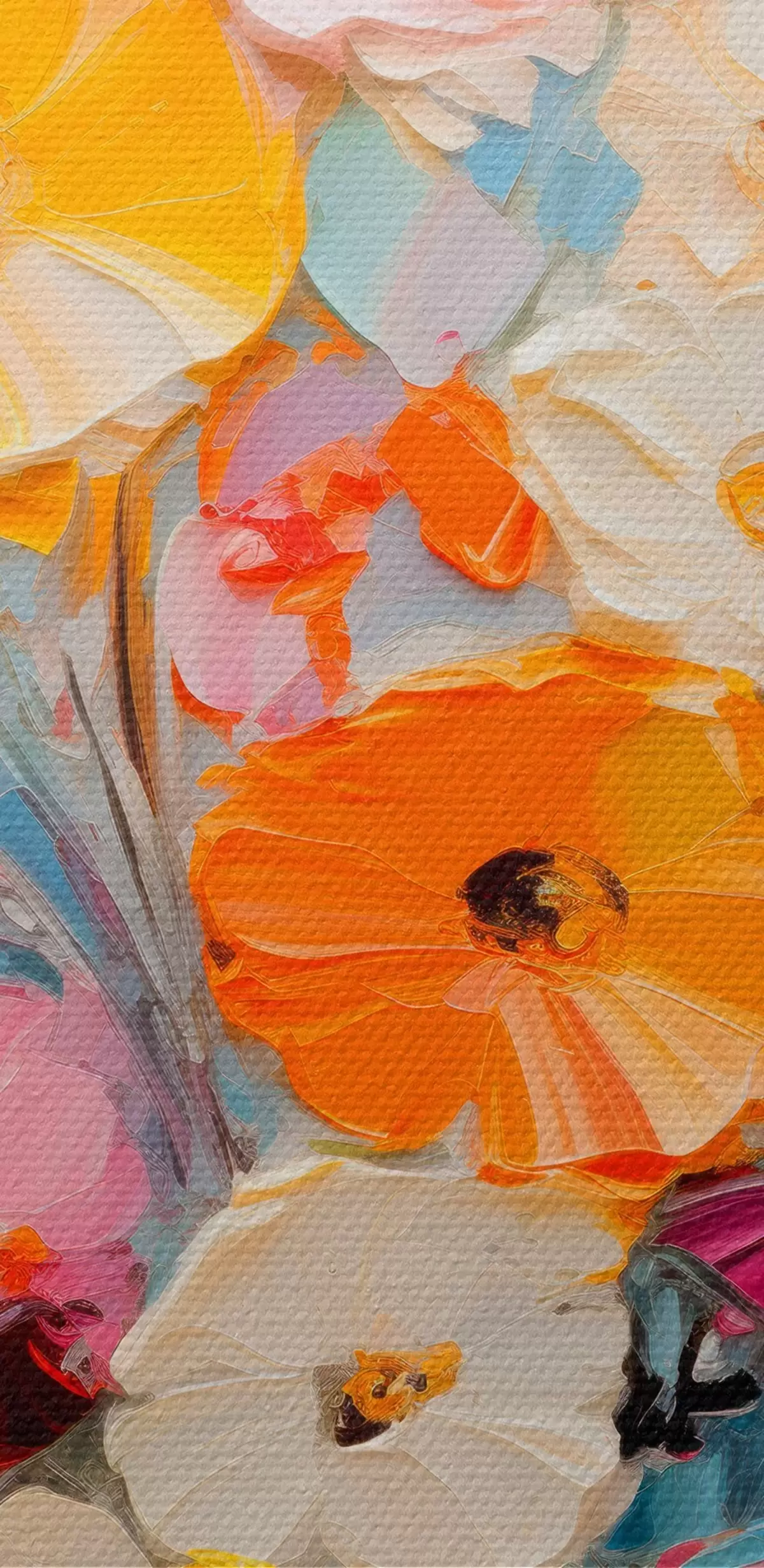 Het schilderij kan direct na ontvangst worden opgehangen. Het schilderij wordt opgespannen op een 2 cm breed houten spieraam.