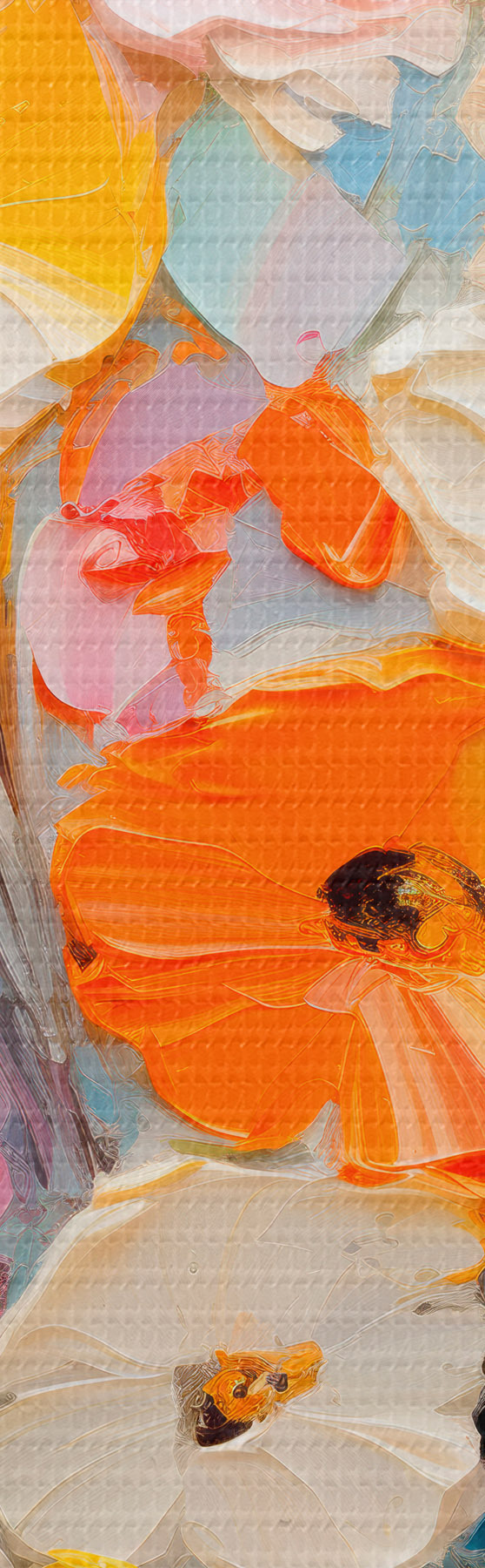 Er zijn drie soorten materiaal te bestellen: Economic Canvas - een dicht en duurzaam materiaal voor digitaal printen, identiek aan schildersdoek, waterdicht oppervlak, realistische weergave van details, materiaal met gemiddelde korrel. Premium Canvas - de textuur lijkt op die van schildersdoek (verweven kleine draden). Zachte, gedetailleerde reproductie van de afbeelding op een mat oppervlak. Eco-Premium - hoogwaardige 100% katoenen stof. Dankzij de natuurlijke katoenvezels is het materiaal duurzaam en slijtvast. Uitstekende kleurweergave en detail.