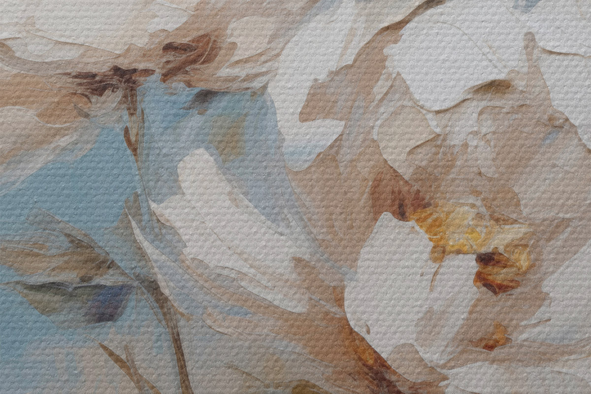 Er zijn drie soorten materiaal te bestellen: Economic Canvas - een dicht en duurzaam materiaal voor digitaal printen, identiek aan schildersdoek, waterdicht oppervlak, realistische weergave van details, materiaal met gemiddelde korrel. Premium Canvas - de textuur lijkt op die van schildersdoek (verweven kleine draden). Zachte, gedetailleerde reproductie van de afbeelding op een mat oppervlak. Eco-Premium - hoogwaardige 100% katoenen stof. Dankzij de natuurlijke katoenvezels is het materiaal duurzaam en slijtvast. Uitstekende kleurweergave en detail.
