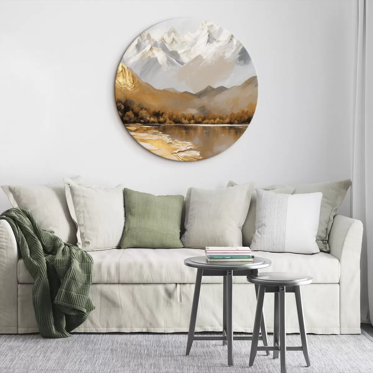 Ronde schilderijen Berglandschap met een meer en bomen Nr r45620