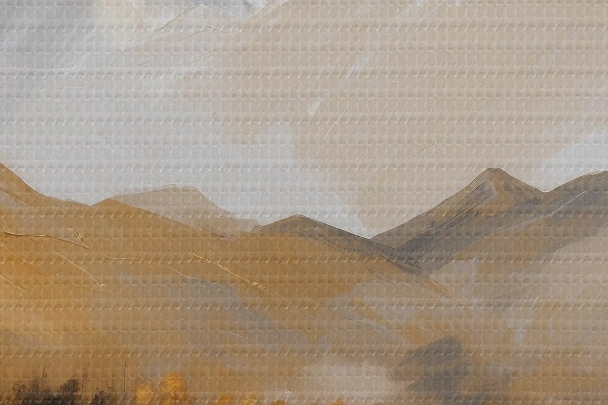 De fijne weving van draden op dit doek lijkt op het oppervlak van professionele schildersdoeken.