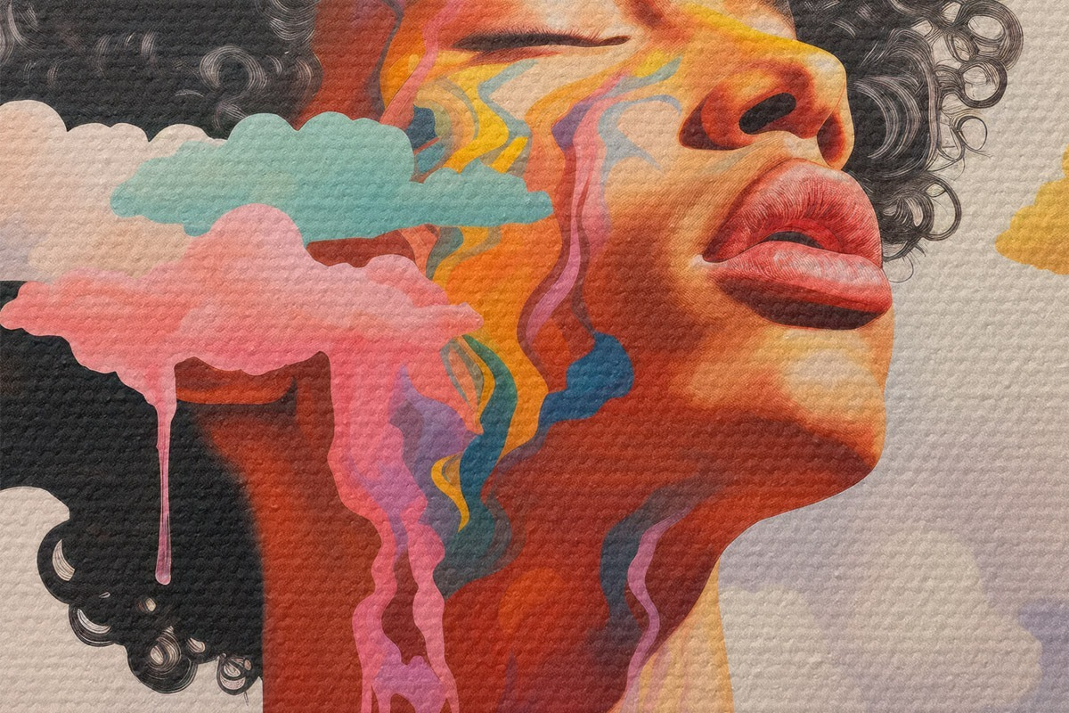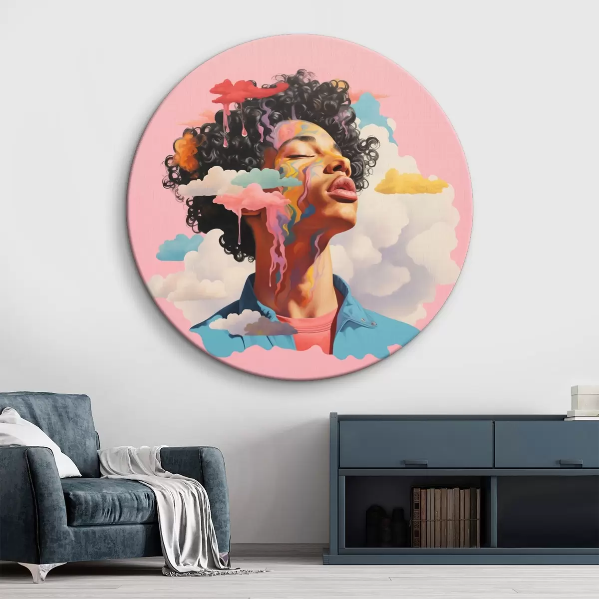 Ronde schilderijen Dromer in de wolken in aquarelstijl Nr r45636