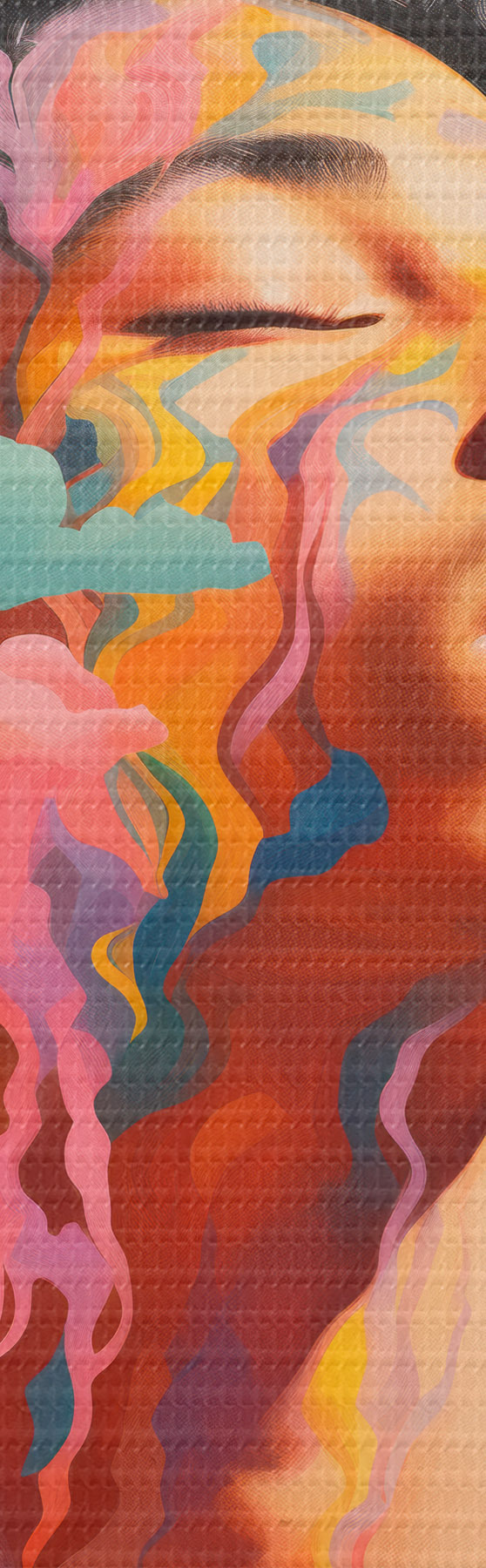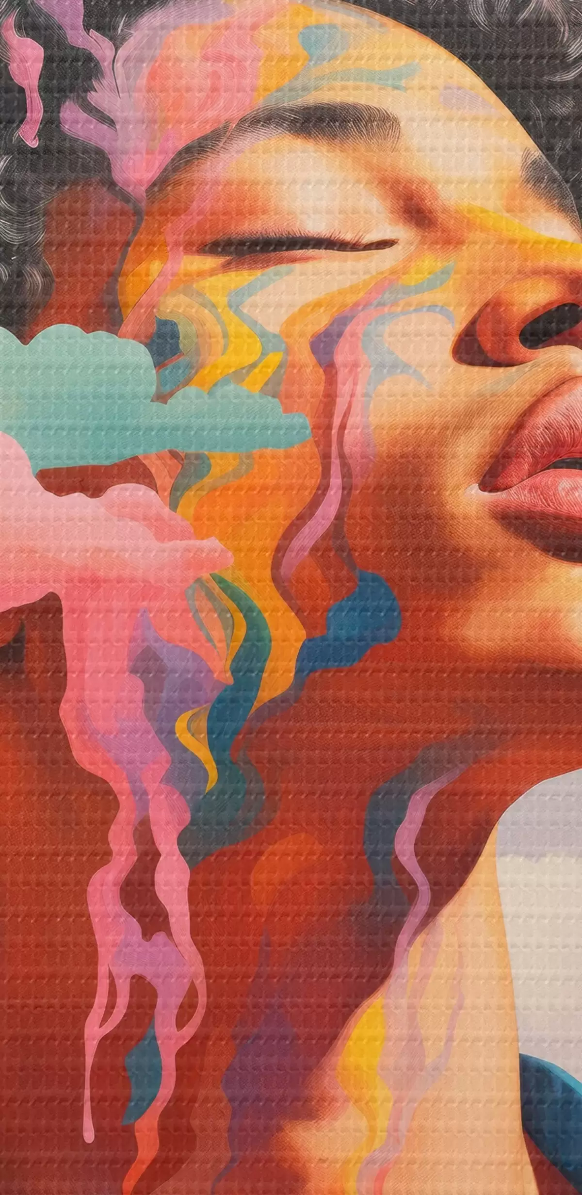 De fijne weving van draden op dit doek lijkt op het oppervlak van professionele schildersdoeken.