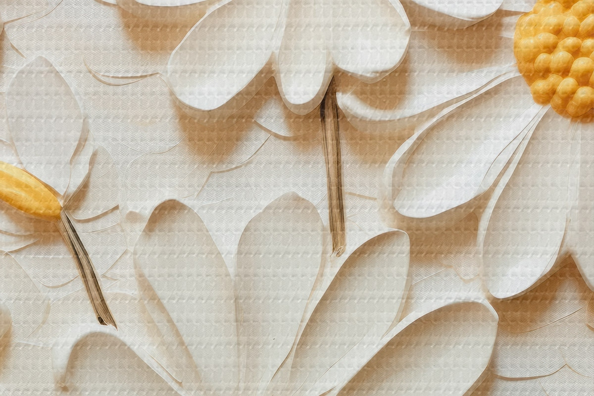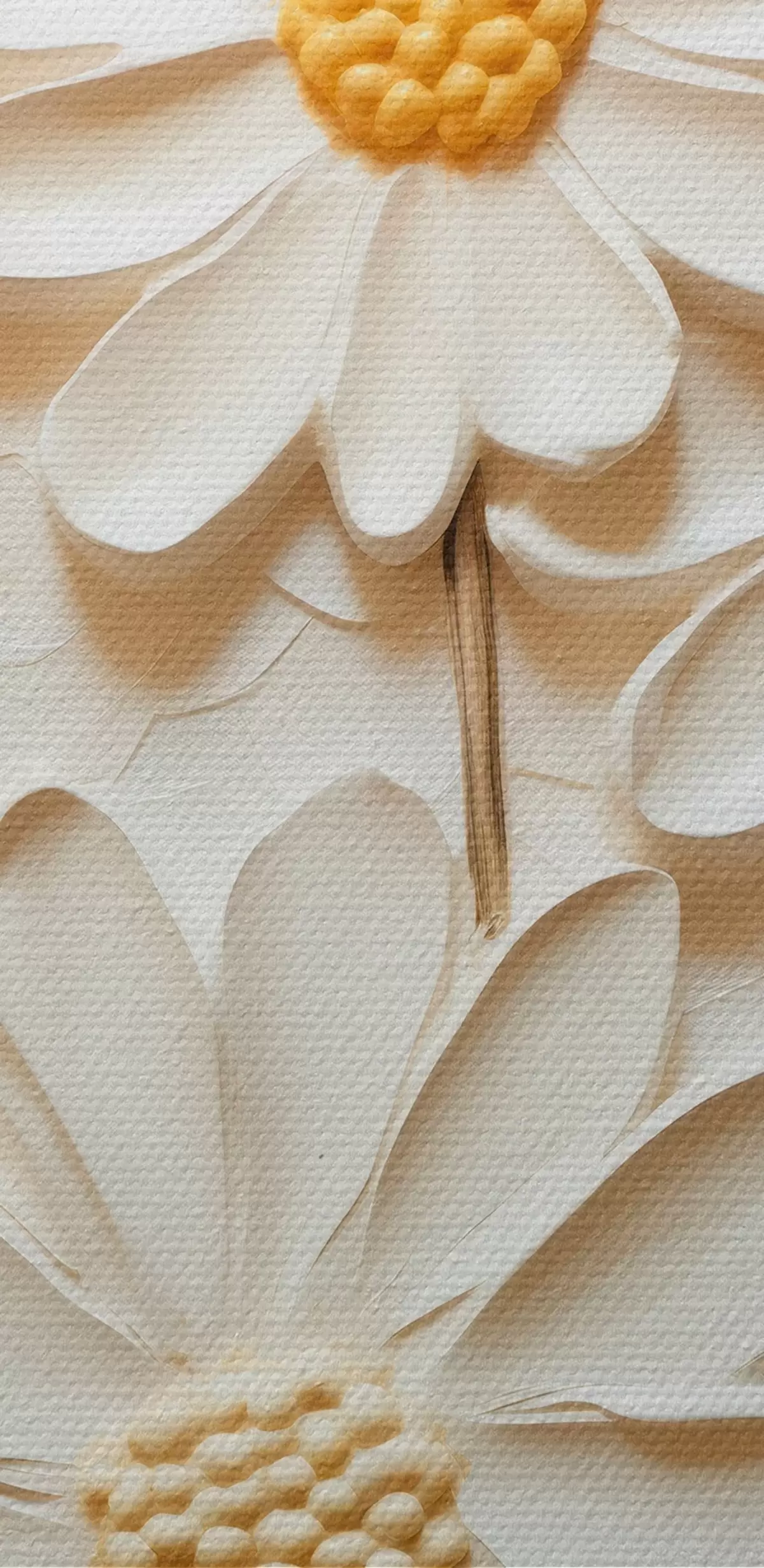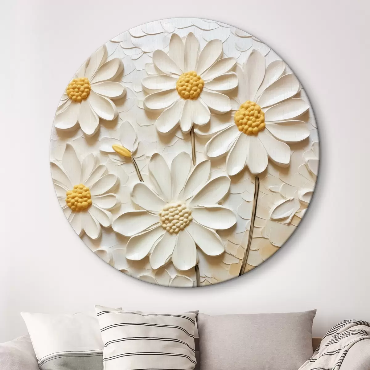 Ronde schilderijen Madeliefjes in impasto stijl: witte bloemblaadjes r45647