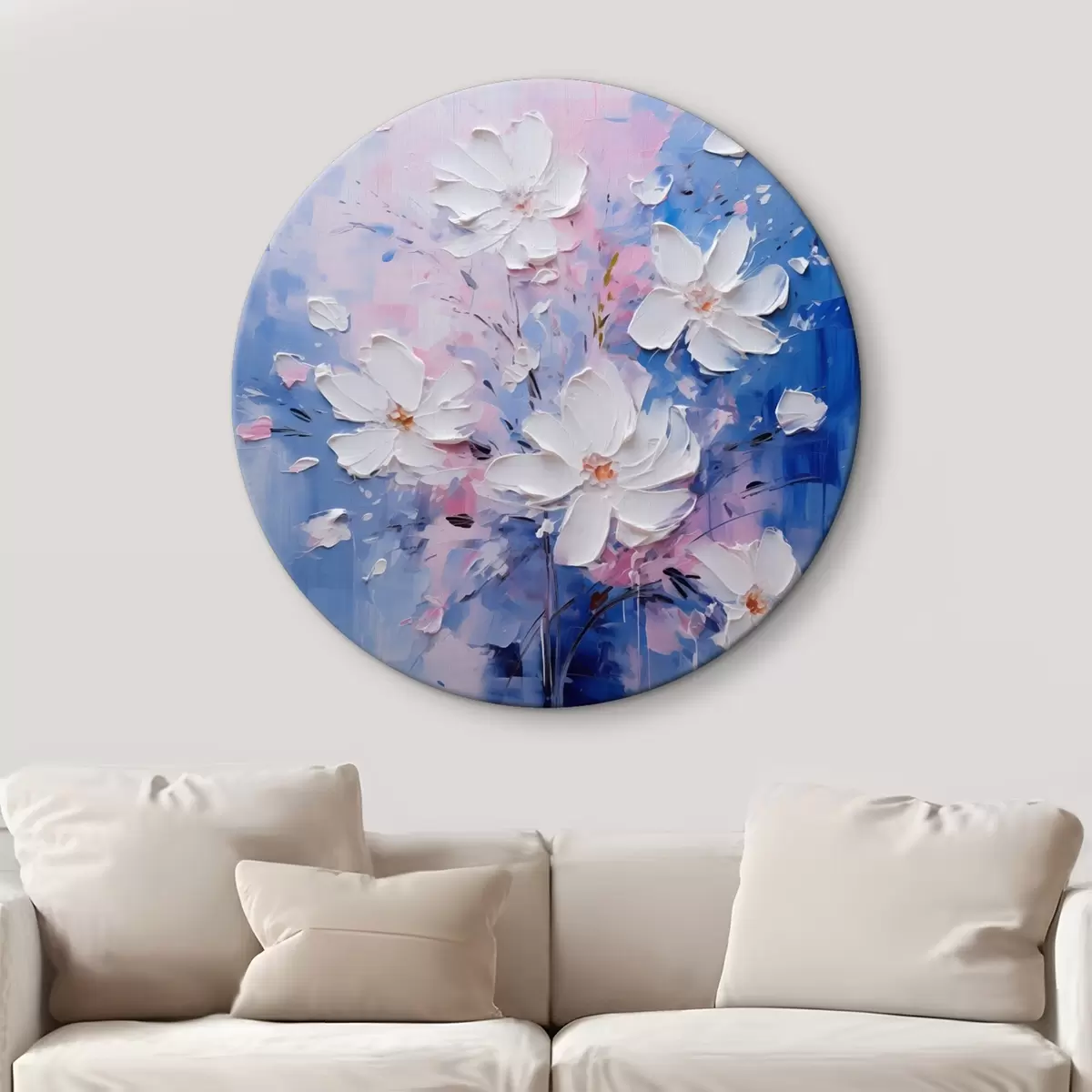 Ronde schilderijen Volumetrische bloemen op een blauwe achtergrond in impasto stijl Nr r45648
