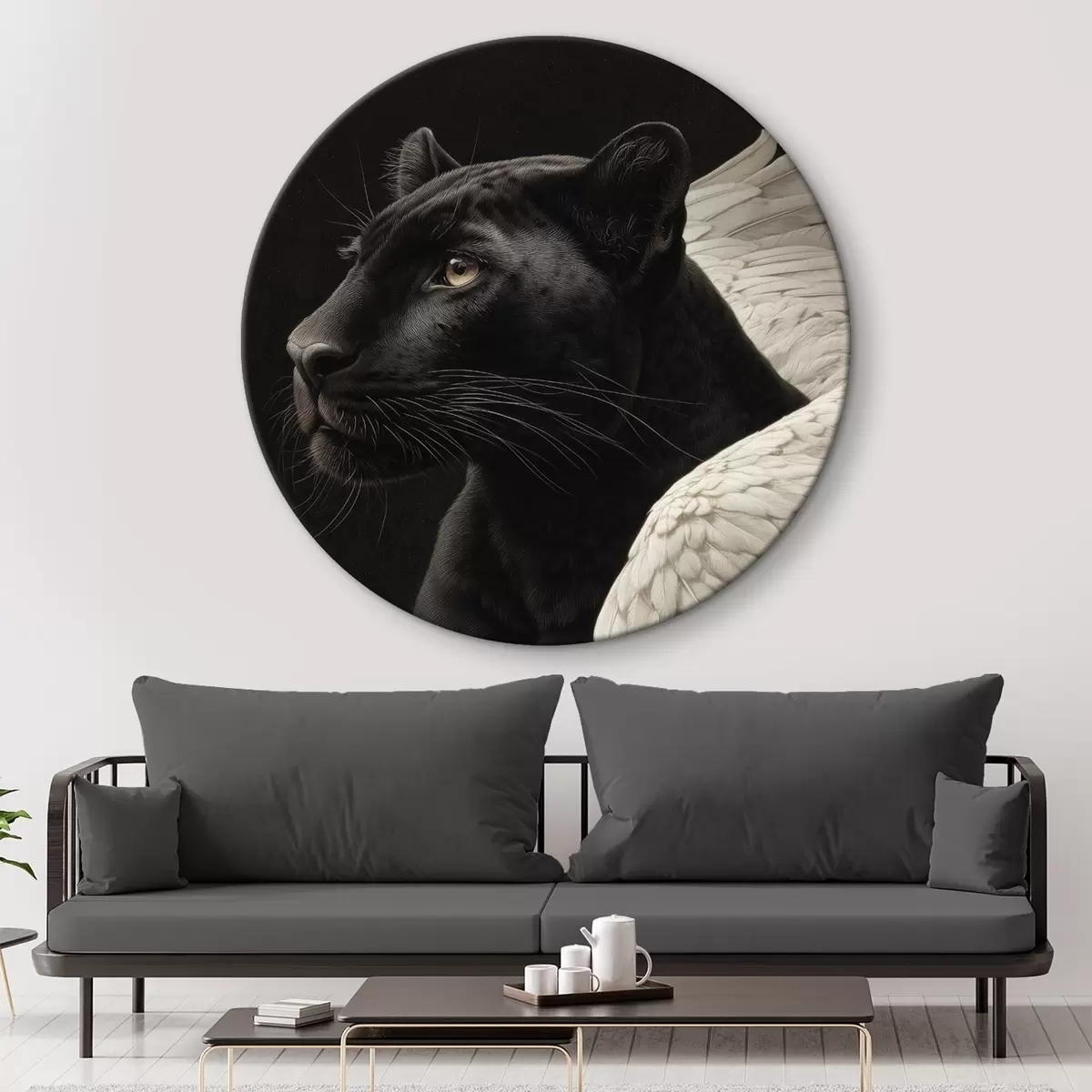 Ronde schilderijen Zwarte panter met vleugels in fantasiestijl Nr r45653