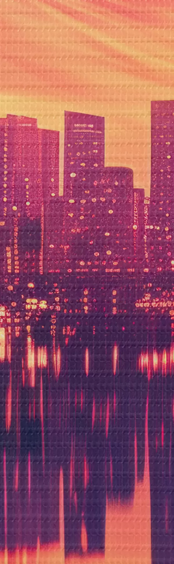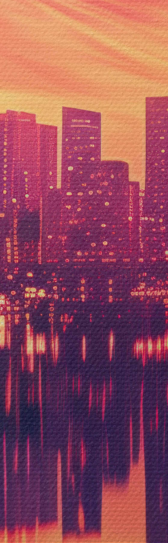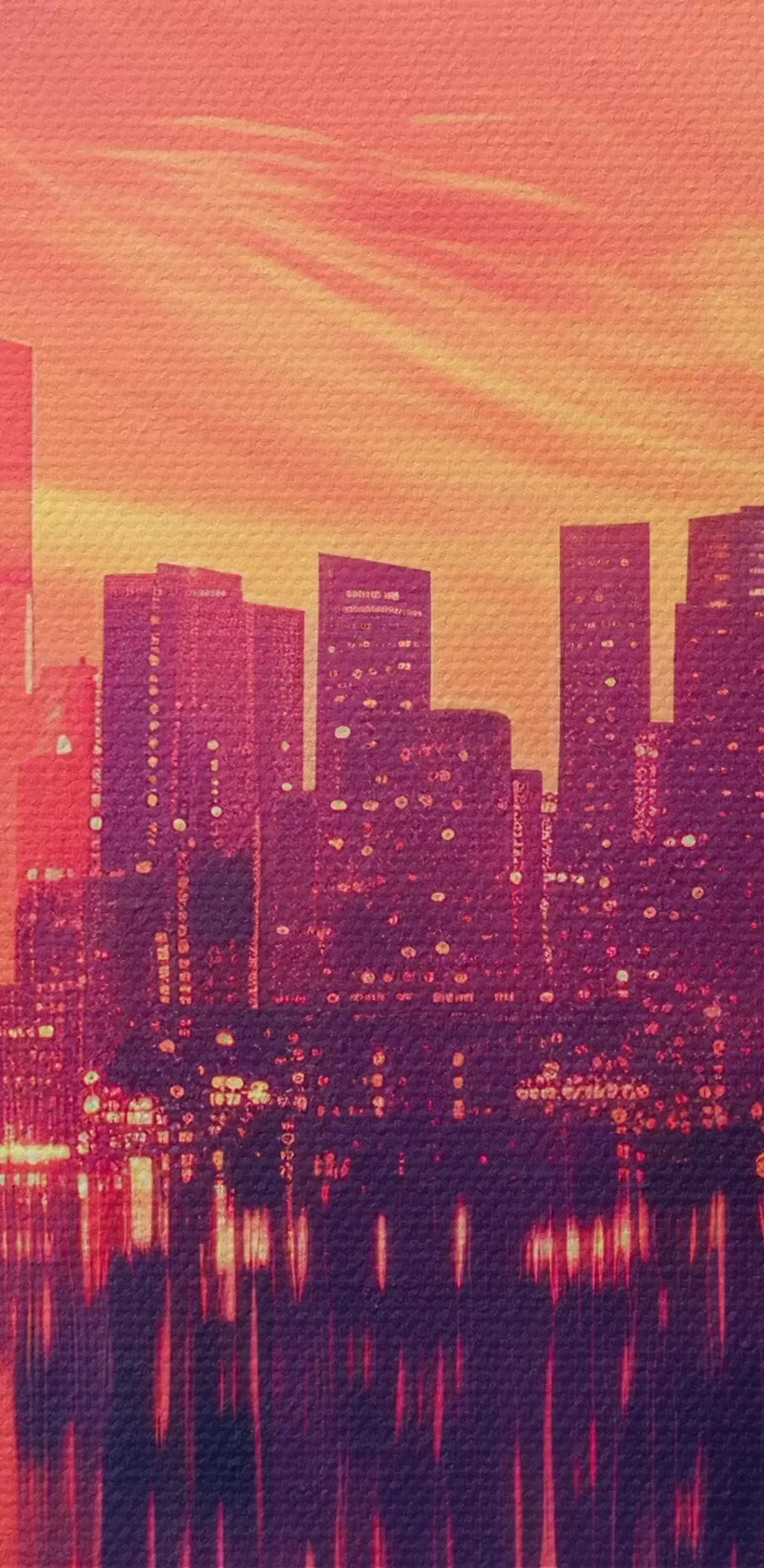 Ronde schilderijen Stad bij zonsondergang Nr r45658