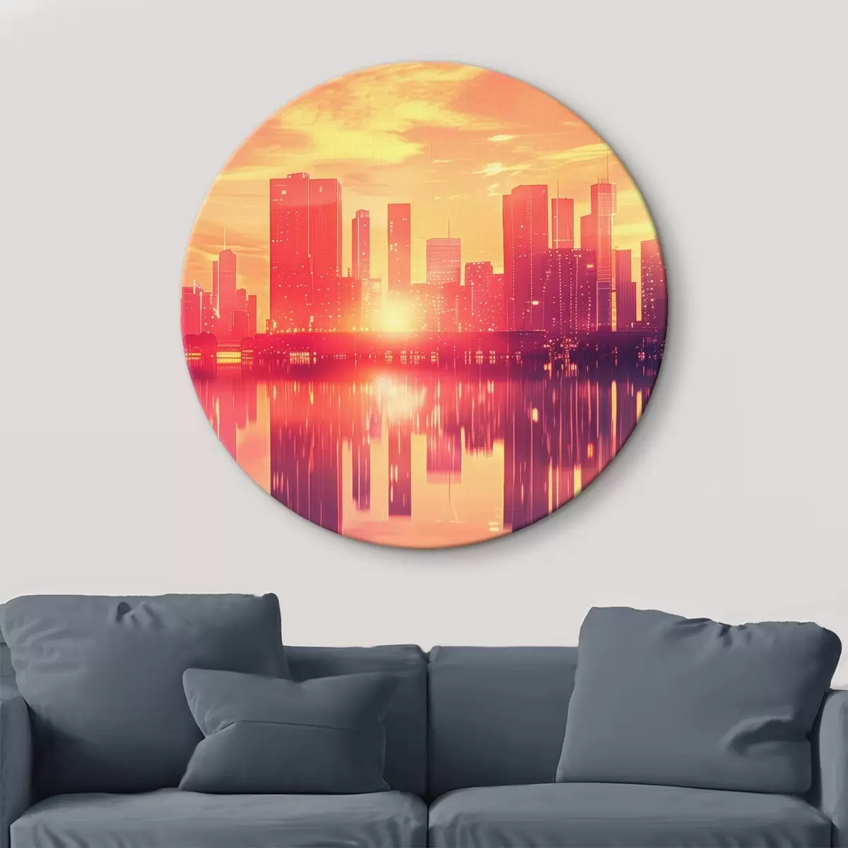 Ronde schilderijen Bestelling tegen de achtergrond van een moderne stad Nr r45659