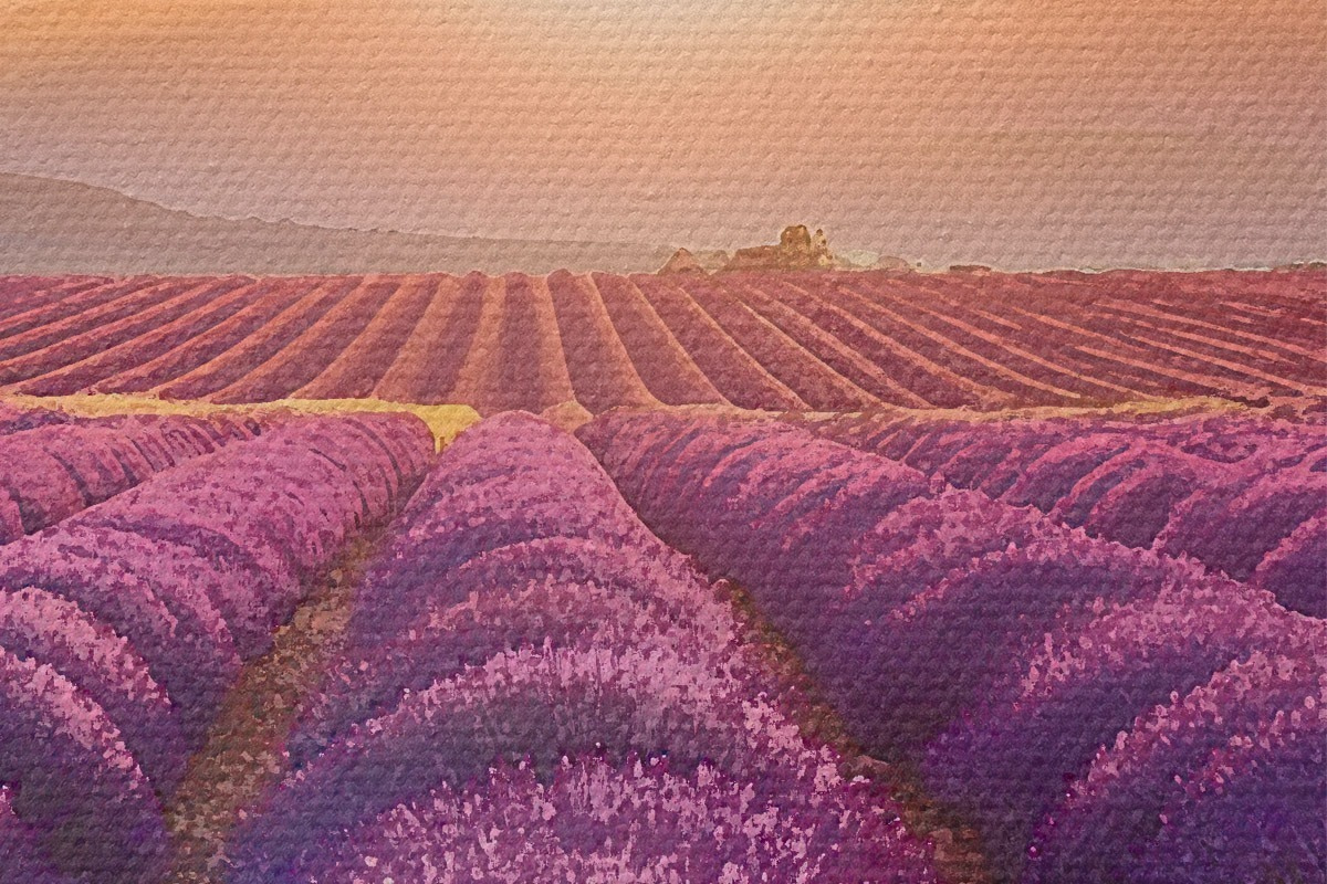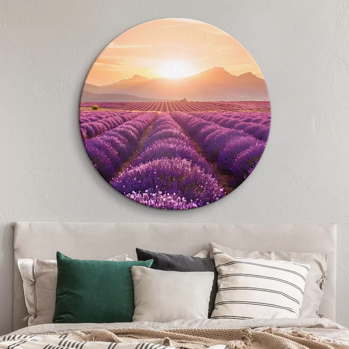 Ronde schilderijen Zonsondergang in een lavendelveld Nr r45663