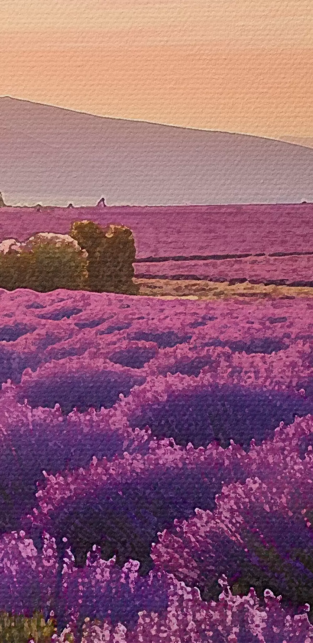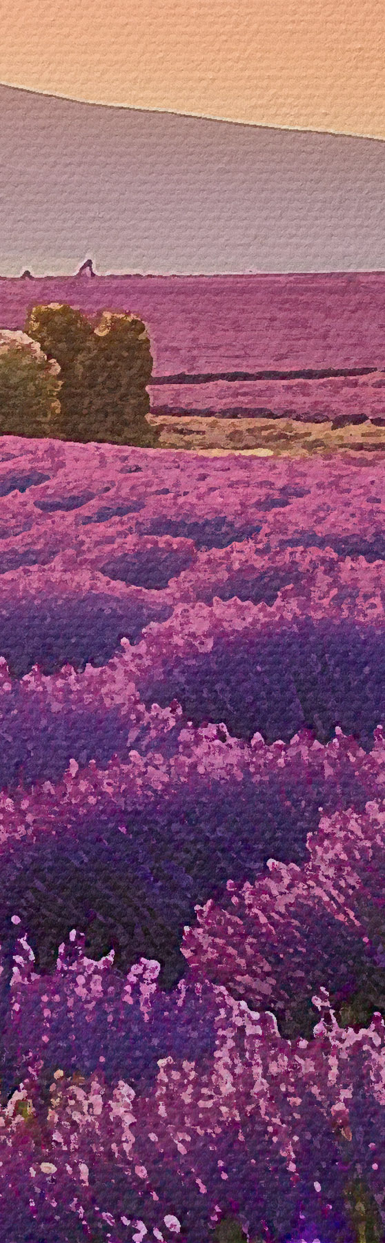 Ronde schilderijen Lavendel tegen de achtergrond van een zonsondergang in de bergen Nr r45664