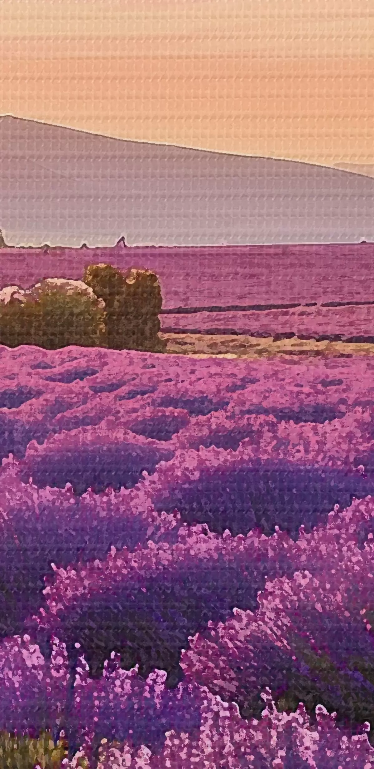 Ronde schilderijen Lavendel tegen de achtergrond van een zonsondergang in de bergen r45664