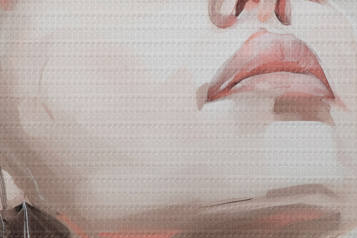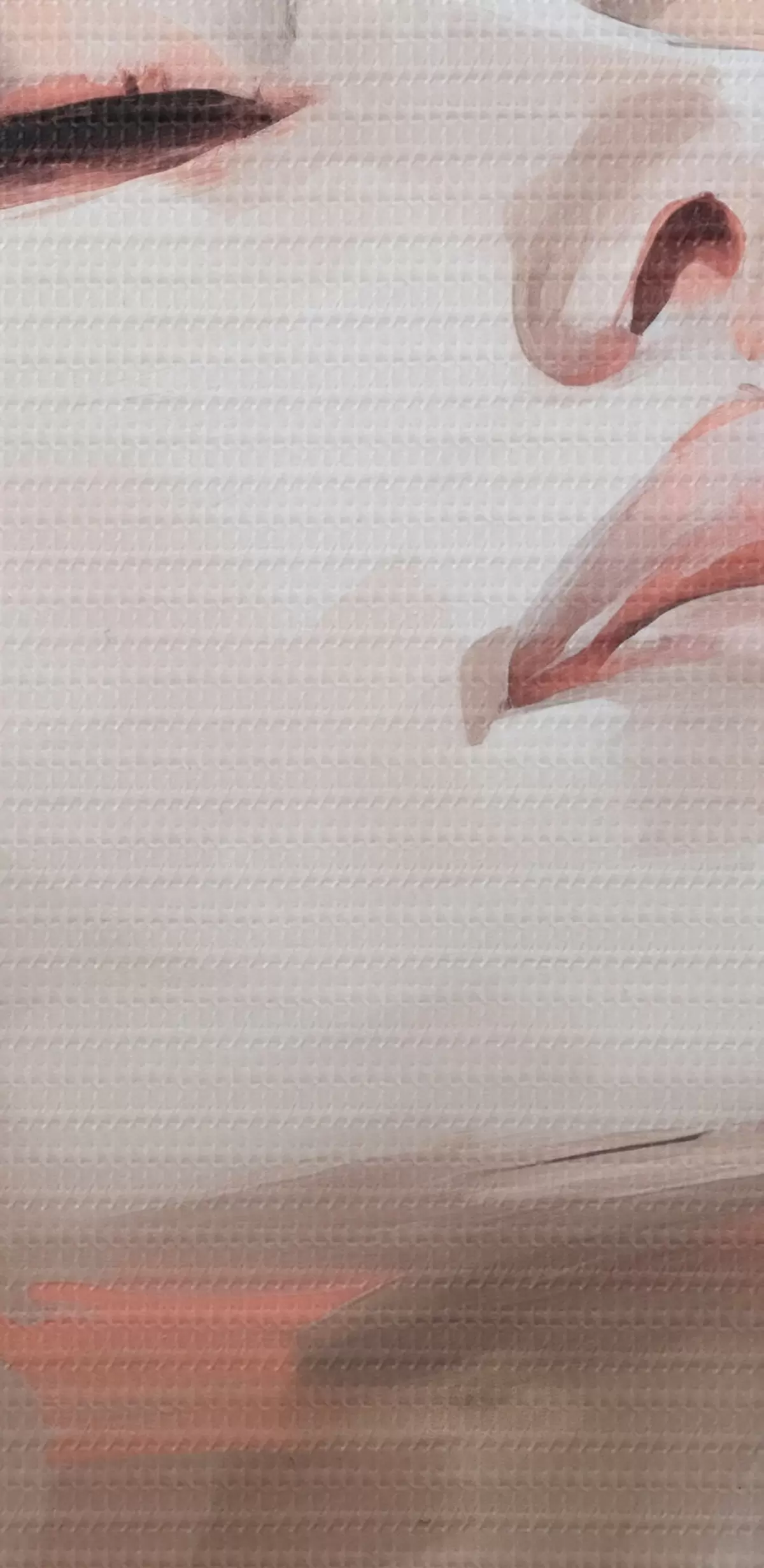 De fijne weving van draden op dit doek lijkt op het oppervlak van professionele schildersdoeken.