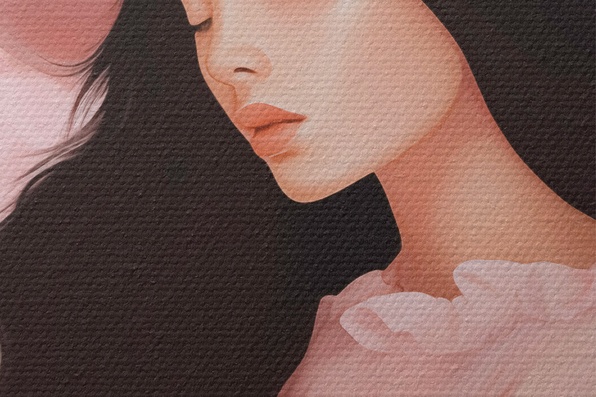 Om het doek op te spannen op spielatten zonder de afbeelding te beschadigen, gebruiken we gespiegeld beeld.
