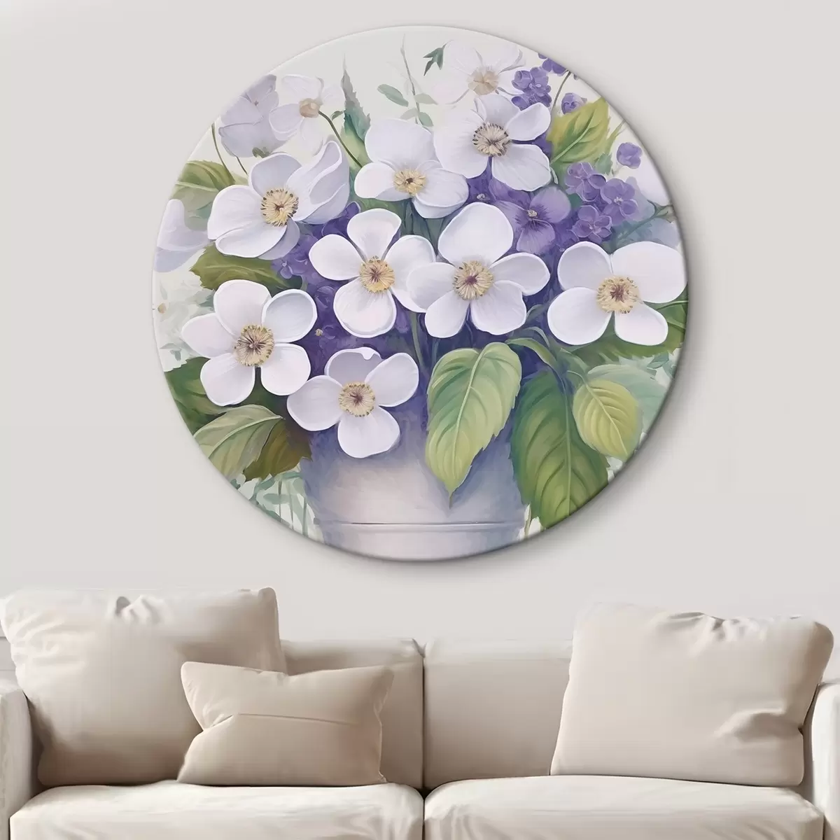 Ronde schilderijen Viooltjes in een pot Nr r45685