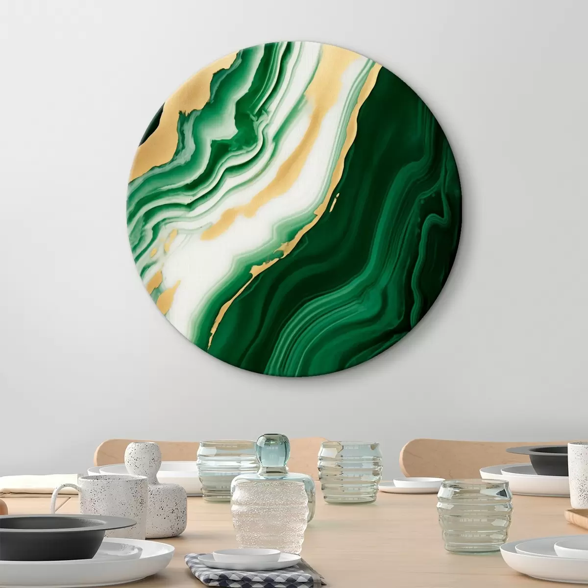 Ronde schilderijen Groen-wit-geel marmeren texturen Nr r45695