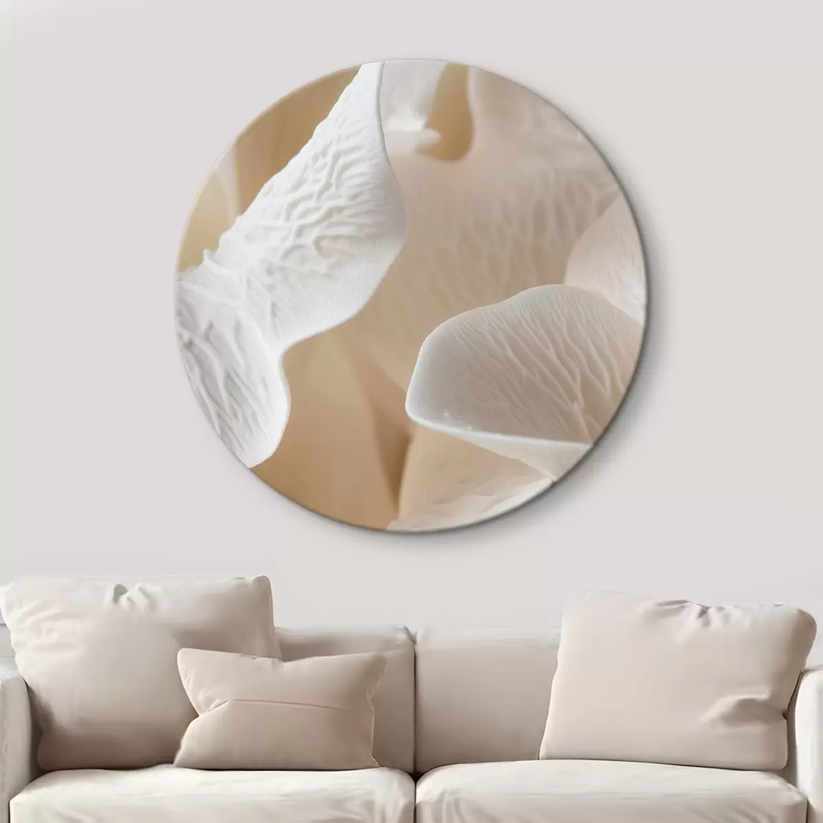 Ronde schilderijen bloemblaadjes met nerven in beige tinten r45703