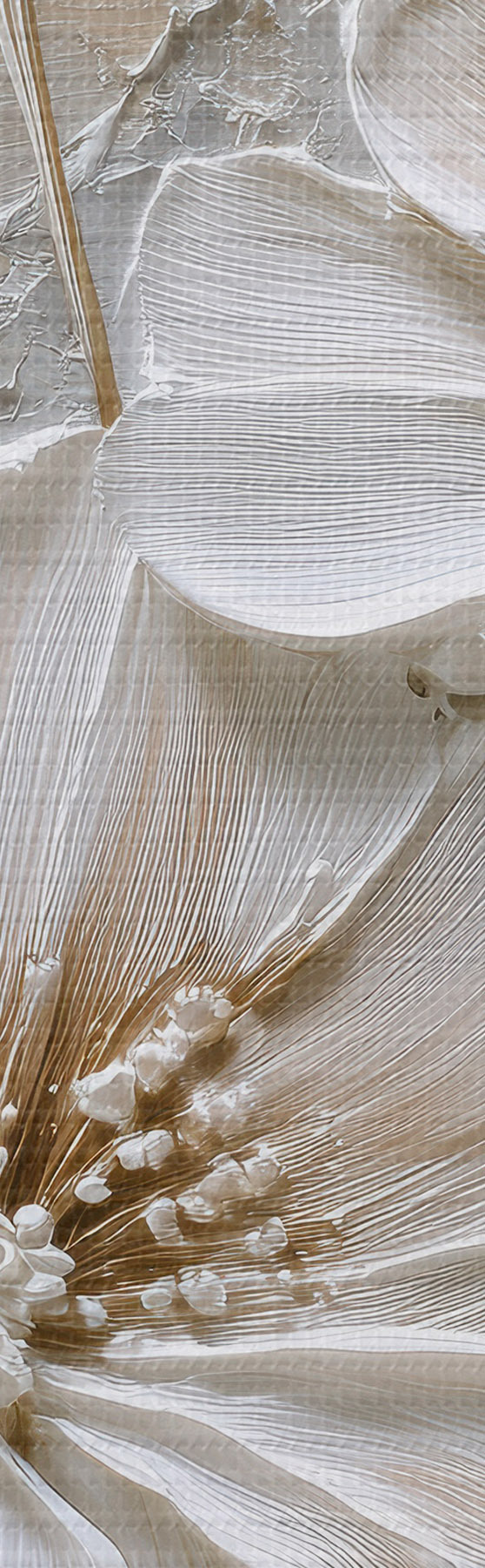 Ronde schilderijen crèmekleurige bloemen in imitatie-impastostijl Nr r45712