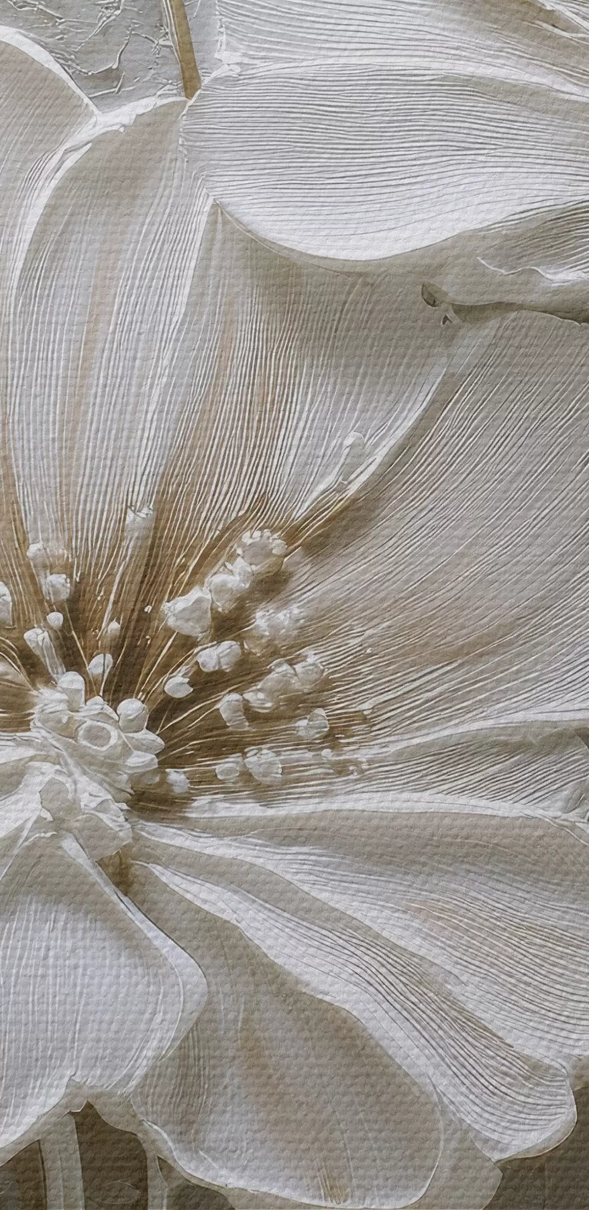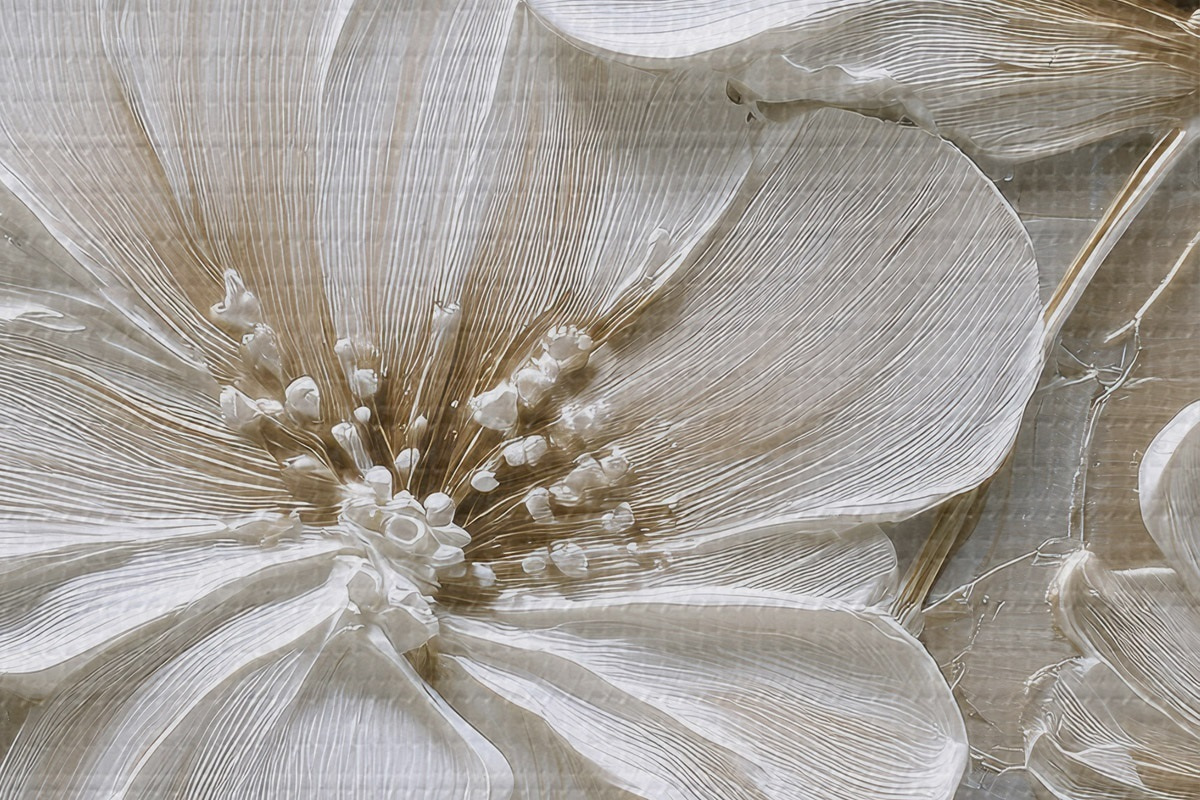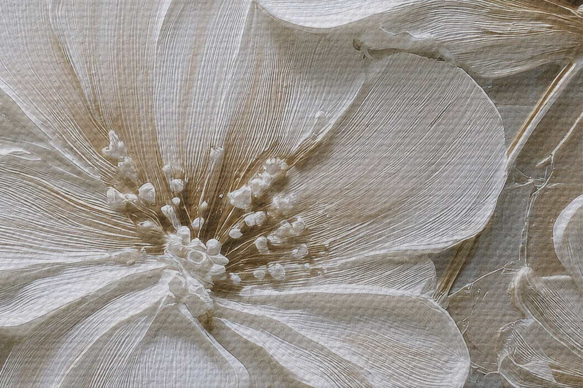Ronde schilderijen crèmekleurige bloemen in imitatie-impastostijl Nr r45712