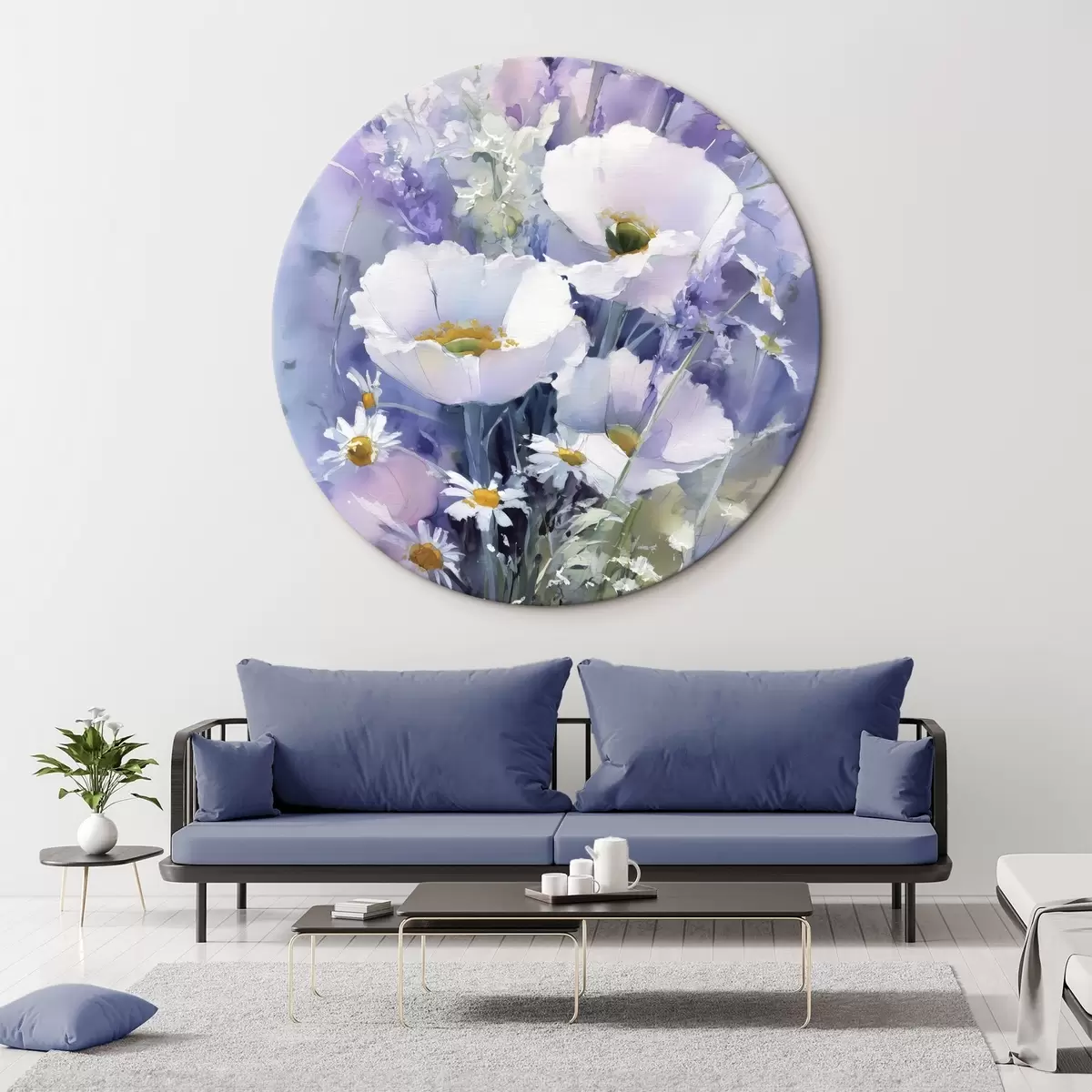 Ronde schilderijen aquarelboeket in lila en witte tinten r45720