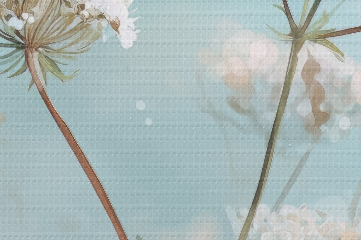 Ronde schilderijen Queen Anne's Lace-bloemen in aquarelstijl op een blauwe achtergrond Nr r45722