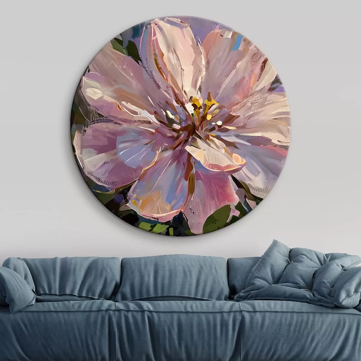 Ronde schilderijen roze bloemen in de stijl van een olieverfschilderij Nr r45723