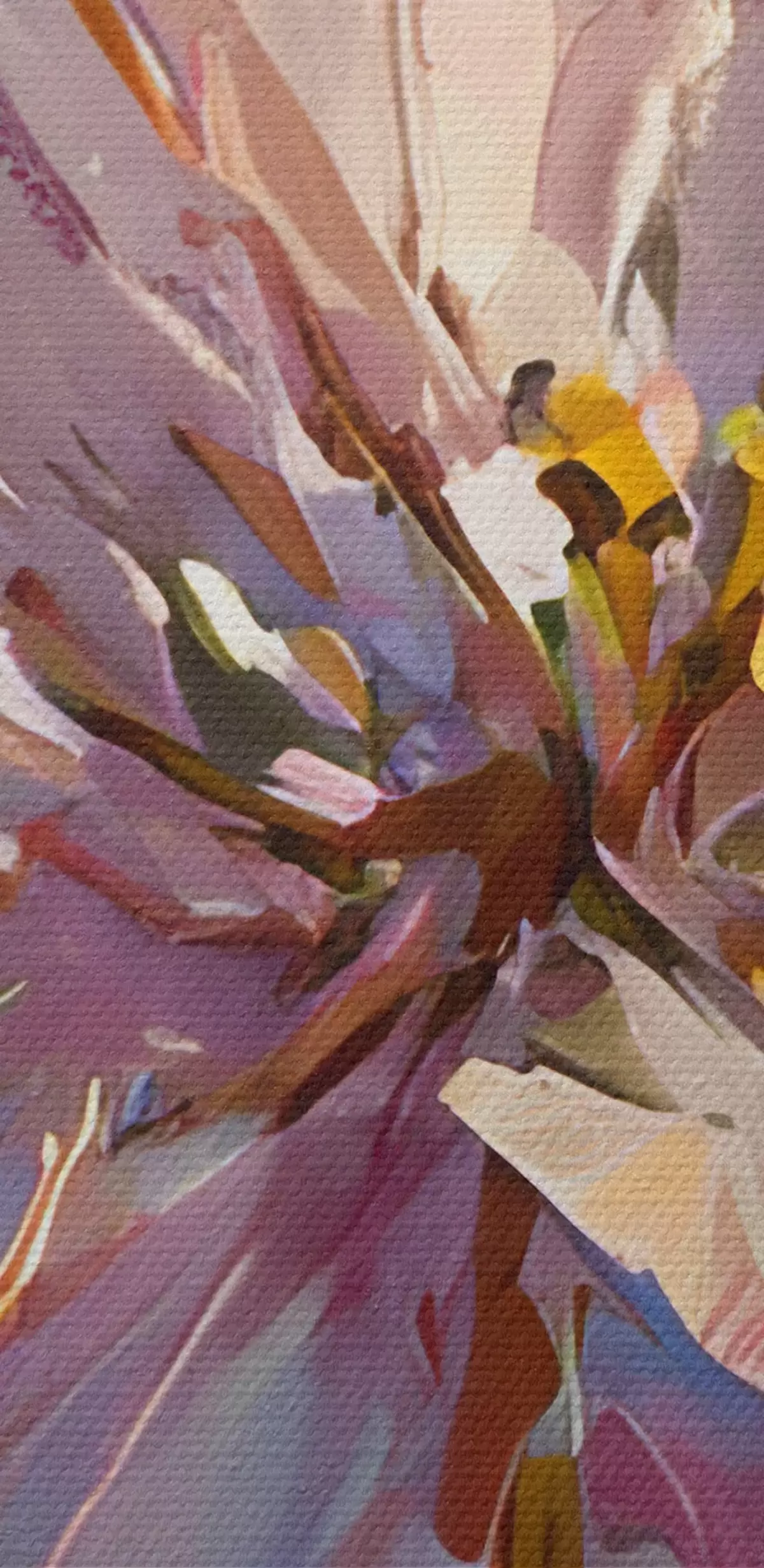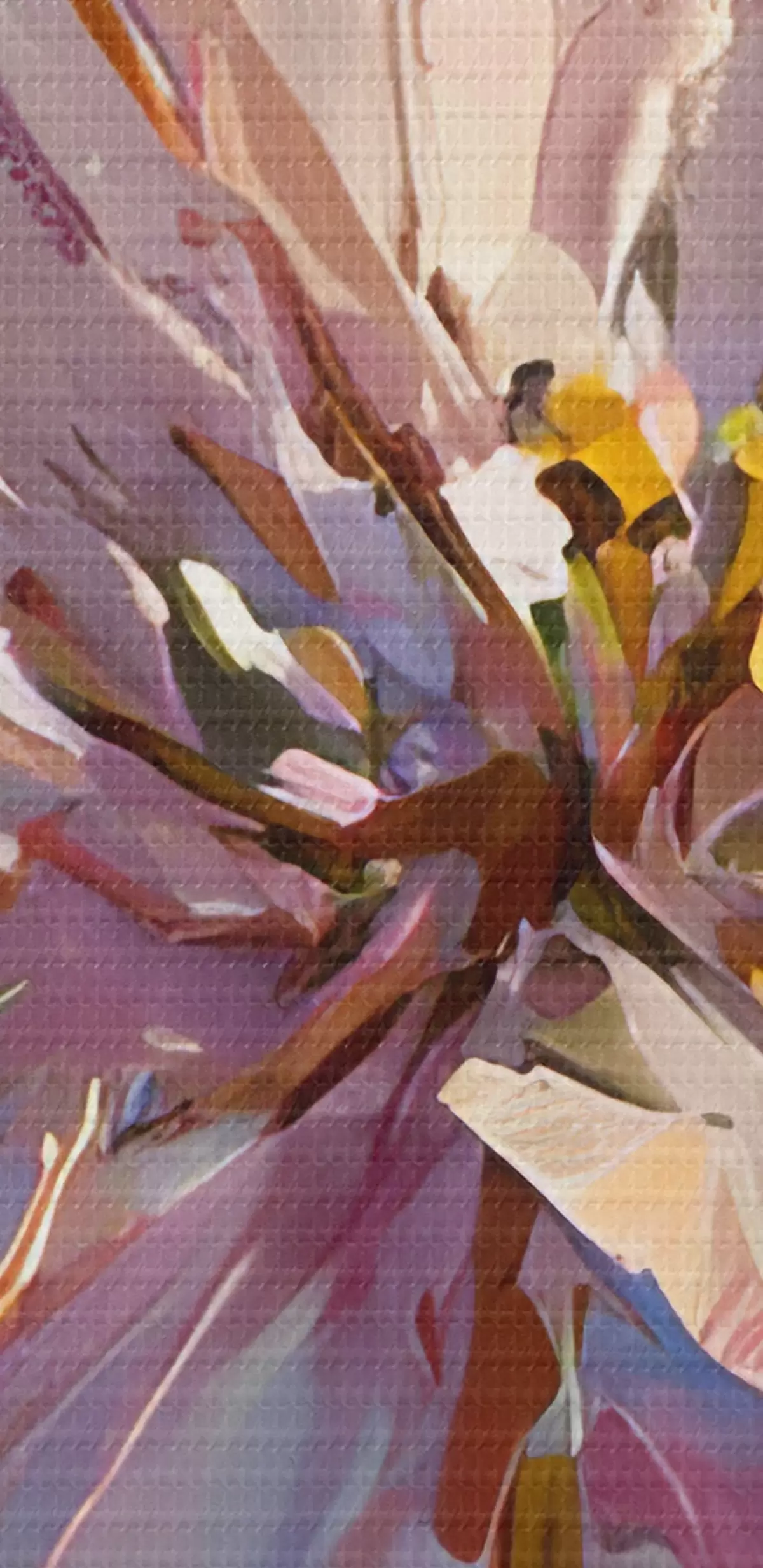 Het schilderij kan direct na ontvangst worden opgehangen. Het schilderij wordt opgespannen op een 2 cm breed houten spieraam.