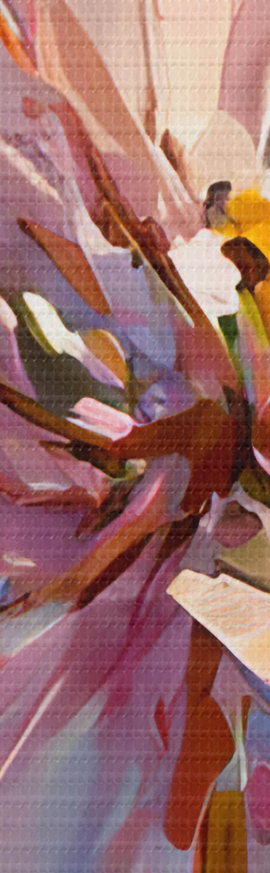 Er zijn drie soorten materiaal te bestellen: Economic Canvas - een dicht en duurzaam materiaal voor digitaal printen, identiek aan schildersdoek, waterdicht oppervlak, realistische weergave van details, materiaal met gemiddelde korrel. Premium Canvas - de textuur lijkt op die van schildersdoek (verweven kleine draden). Zachte, gedetailleerde reproductie van de afbeelding op een mat oppervlak. Eco-Premium - hoogwaardige 100% katoenen stof. Dankzij de natuurlijke katoenvezels is het materiaal duurzaam en slijtvast. Uitstekende kleurweergave en detail.