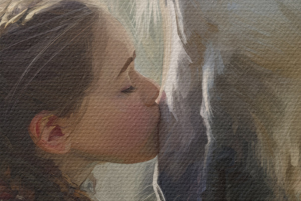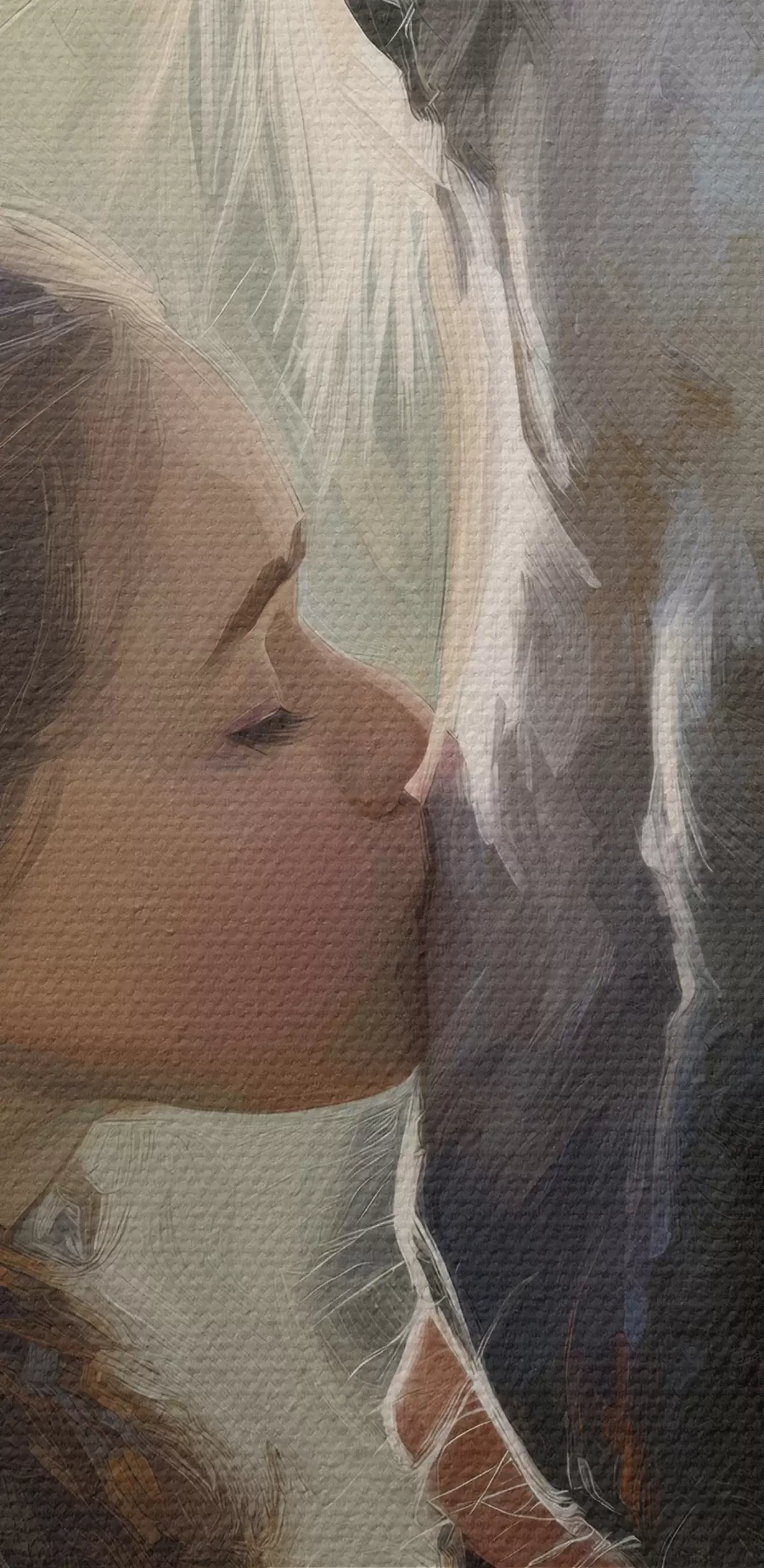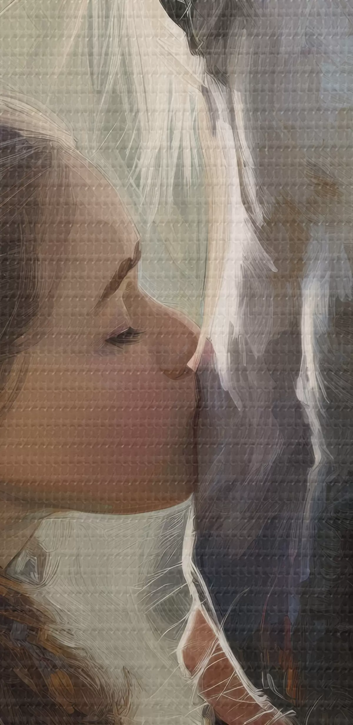 Ronde schilderijen meisje dat een paard kust Nr r45731
