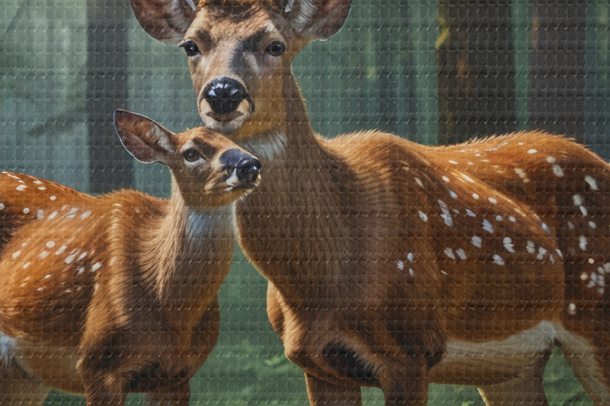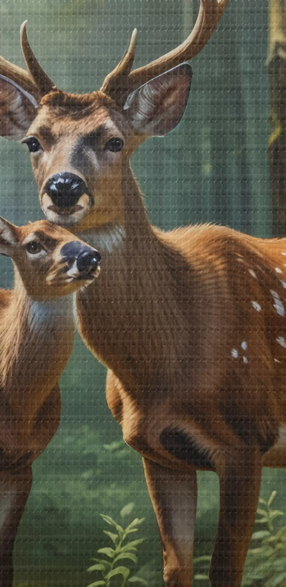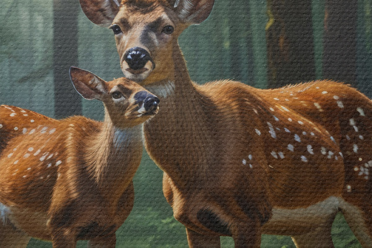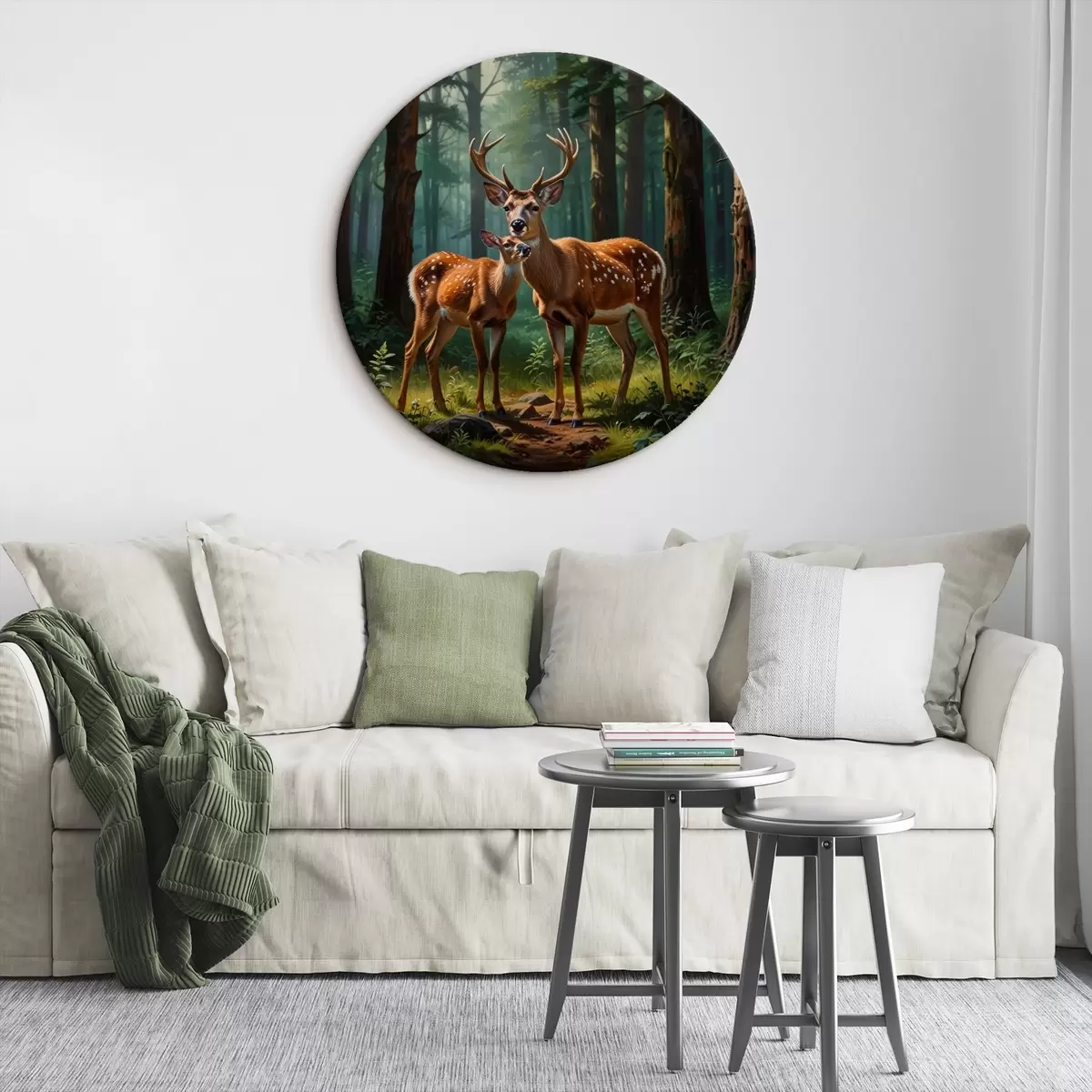 Ronde schilderijen hert met kalf in het bos Nr r45732
