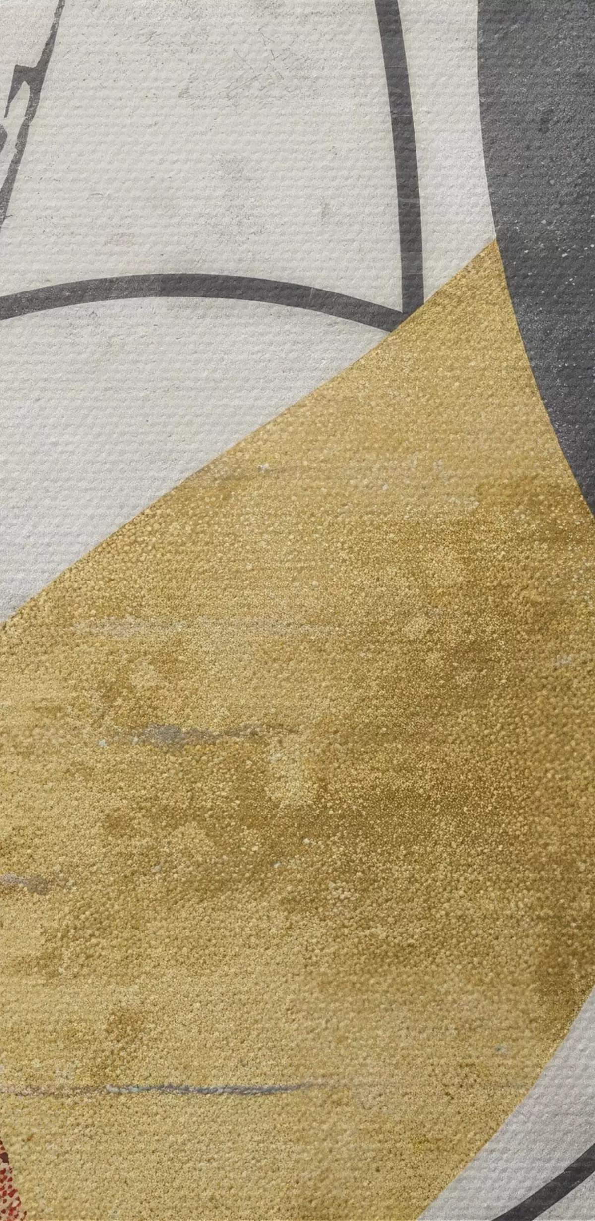Het schilderij kan direct na ontvangst worden opgehangen. Het schilderij wordt opgespannen op een 2 cm breed houten spieraam.