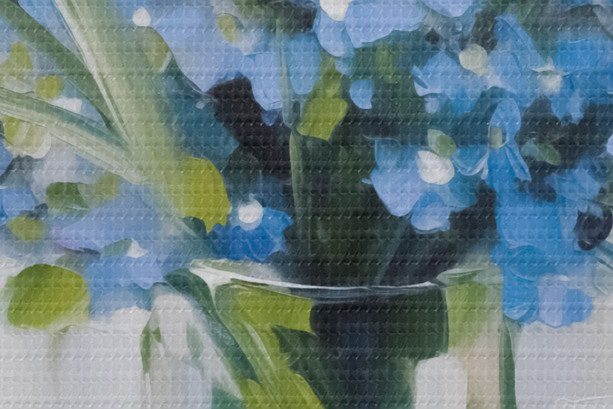 Het is een goedkopere versie van canvas. Het is duurzamer en vochtbestendiger, maar het oppervlak heeft niet zo'n uitgesproken textuur als Premium Canvas