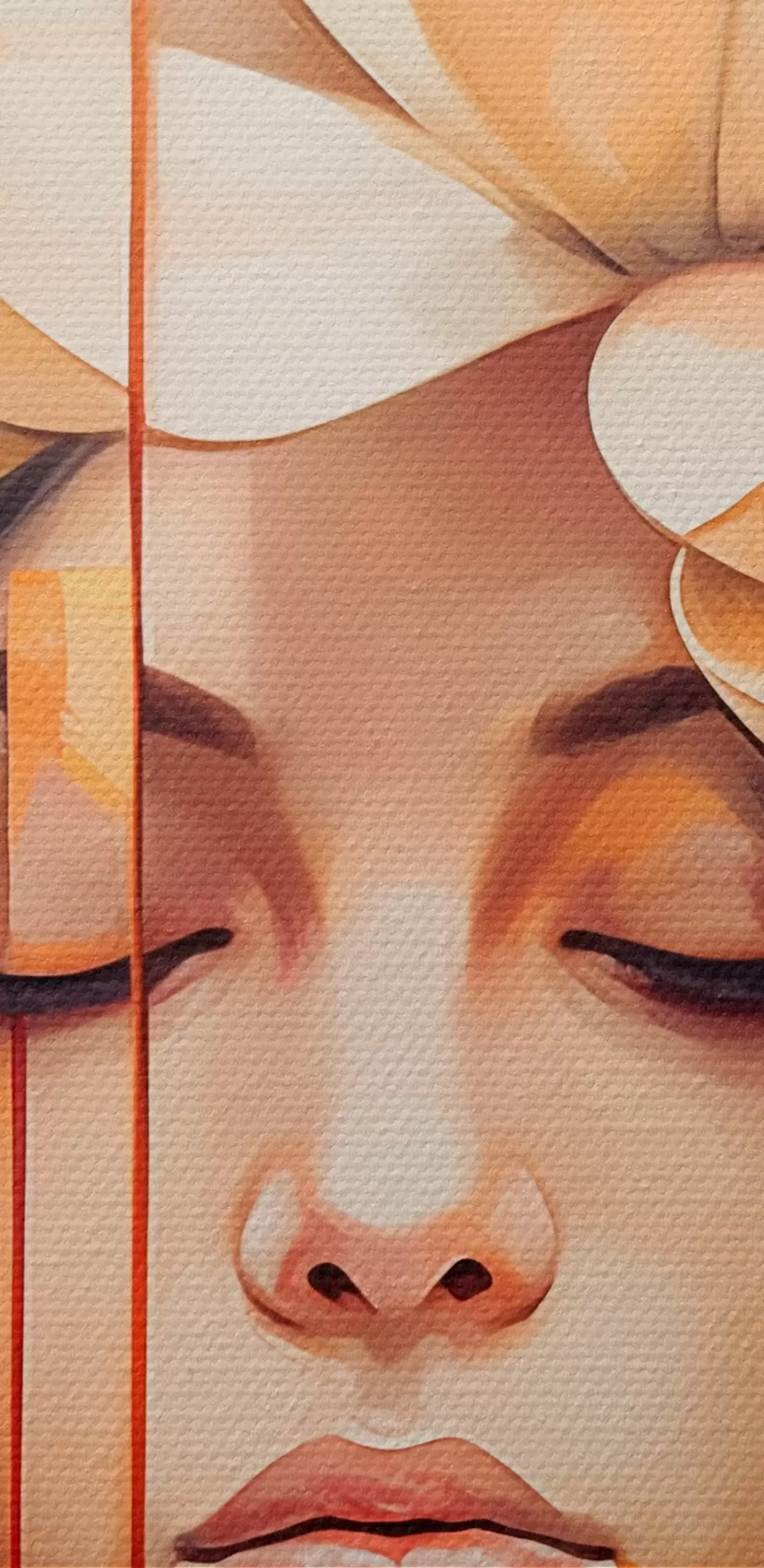 Ronde schilderijen Vrouw met een bloem Nr r45796