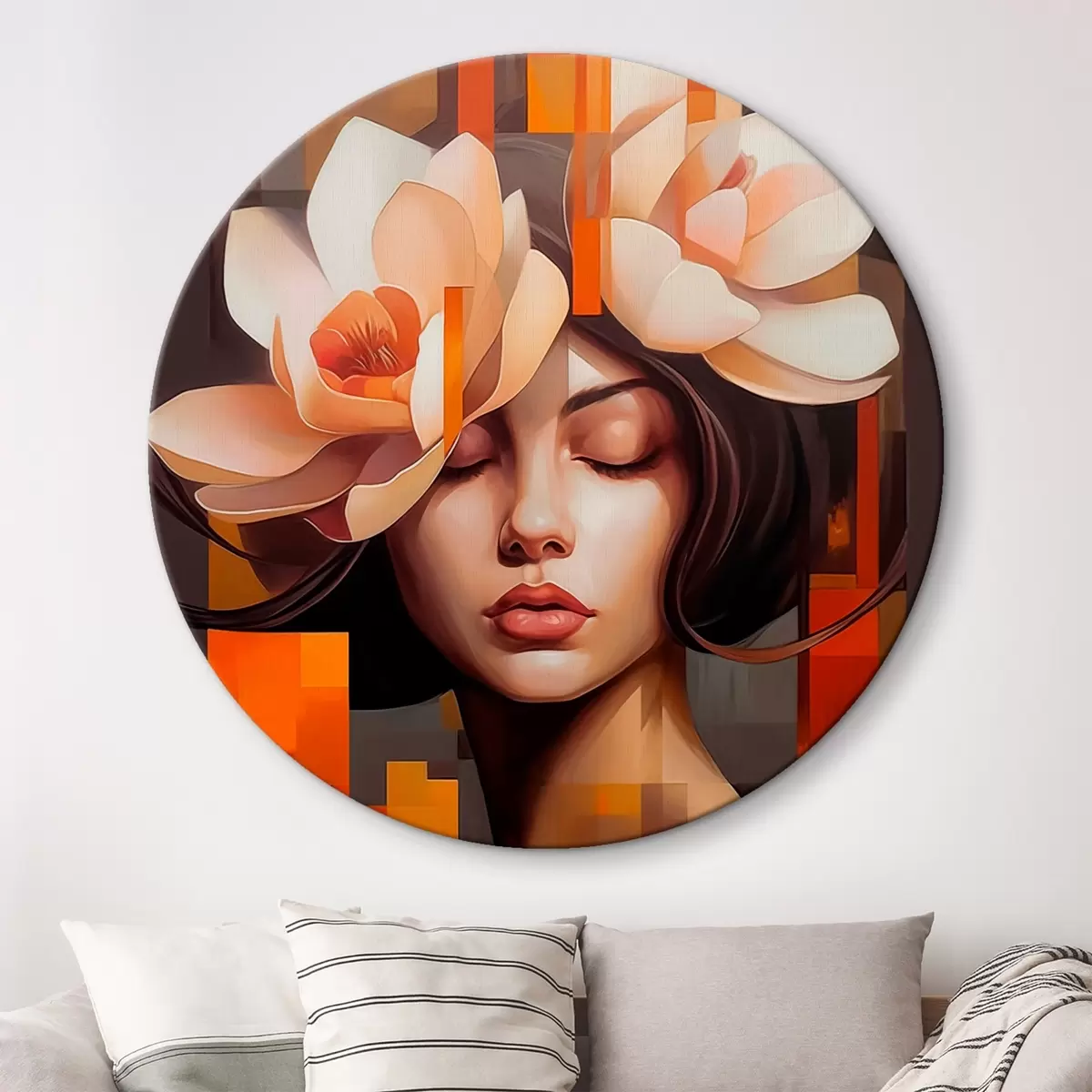 Ronde schilderijen Vrouw met een bloem Nr r45797