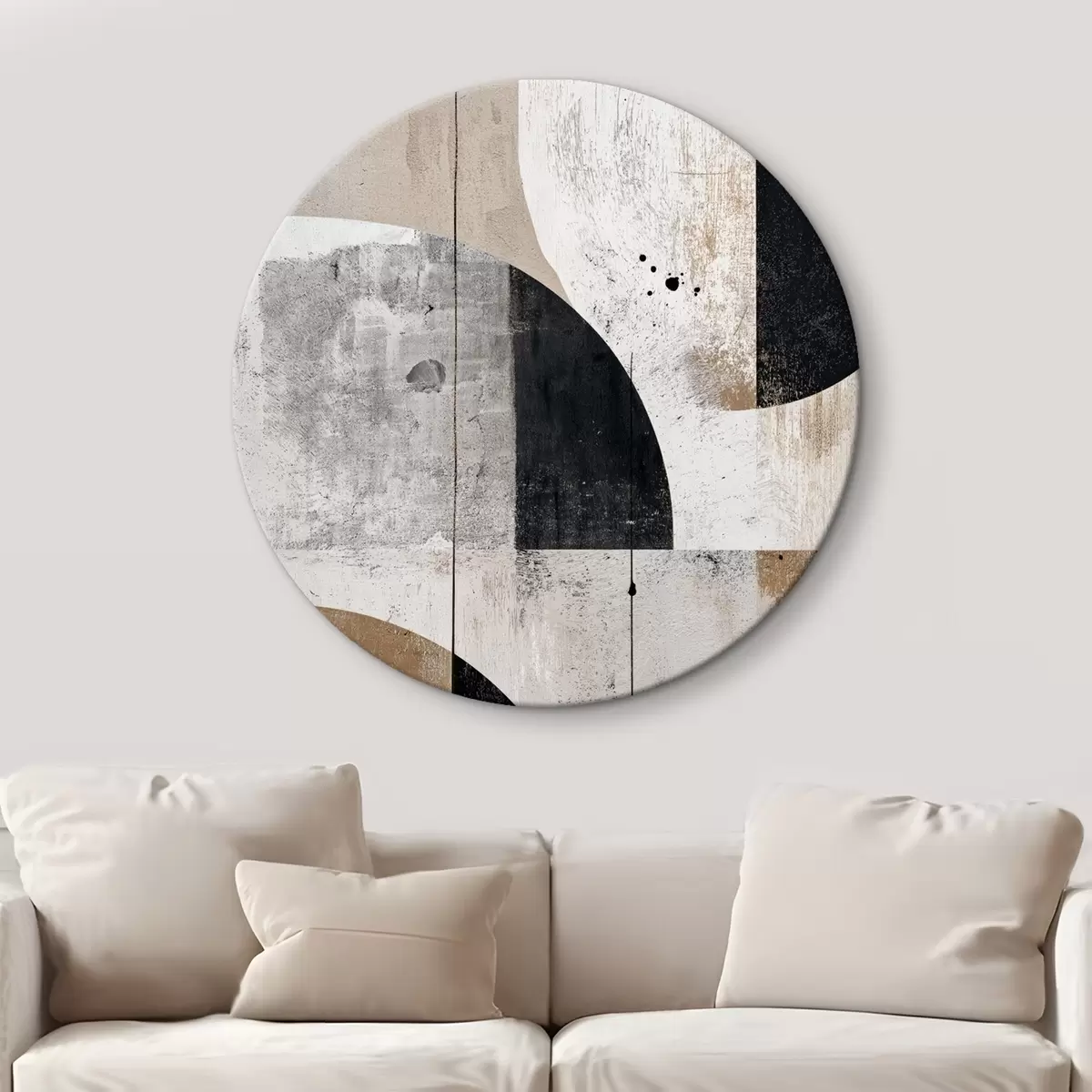 Ronde schilderijen Geometrische vormen in grijze en beige tinten Nr r45812