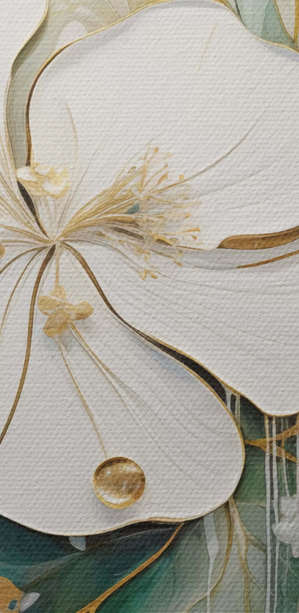 Het schilderij kan direct na ontvangst worden opgehangen. Het schilderij wordt opgespannen op een 2 cm breed houten spieraam.