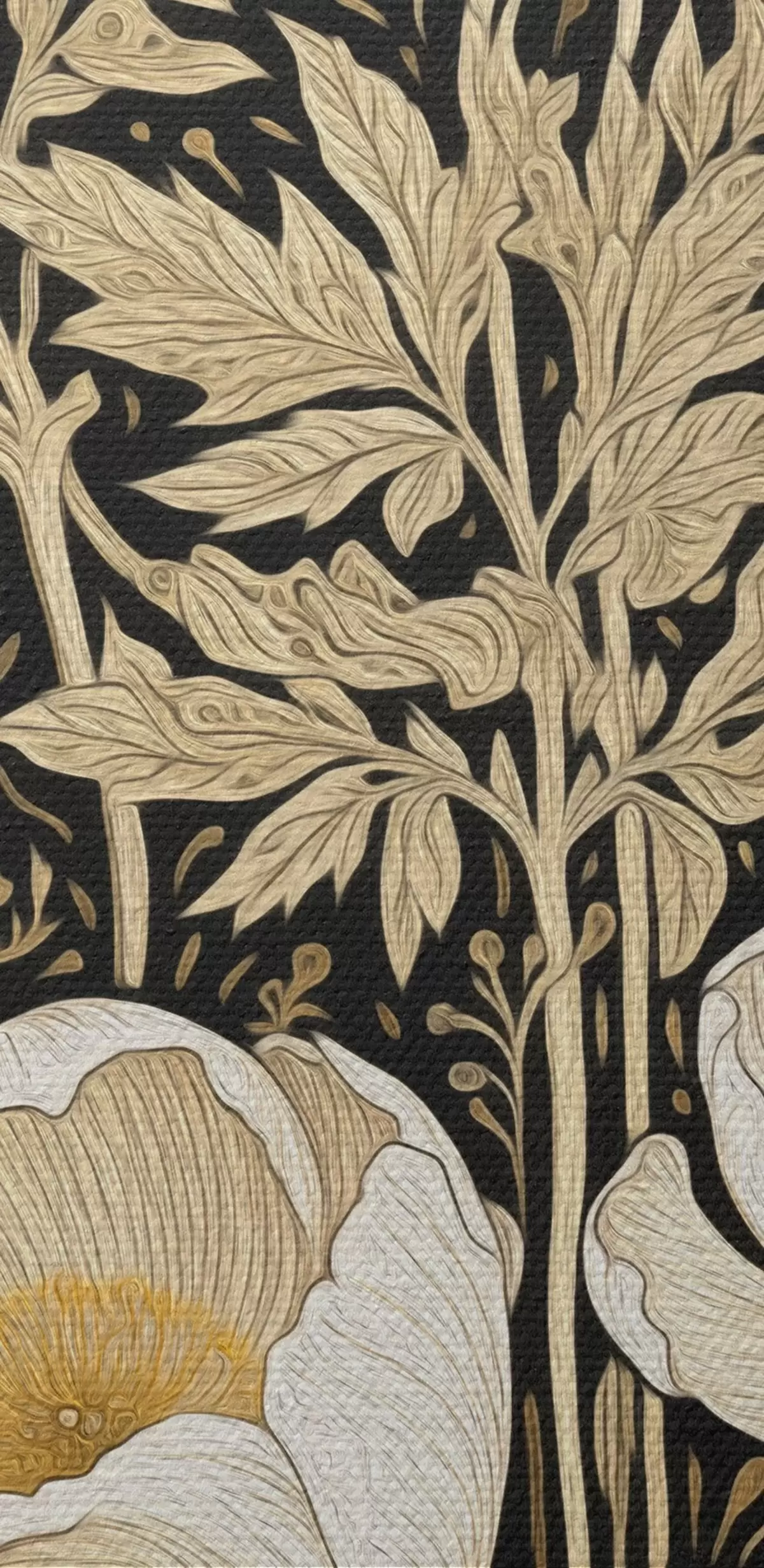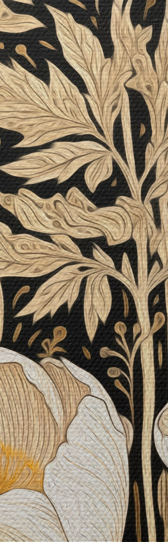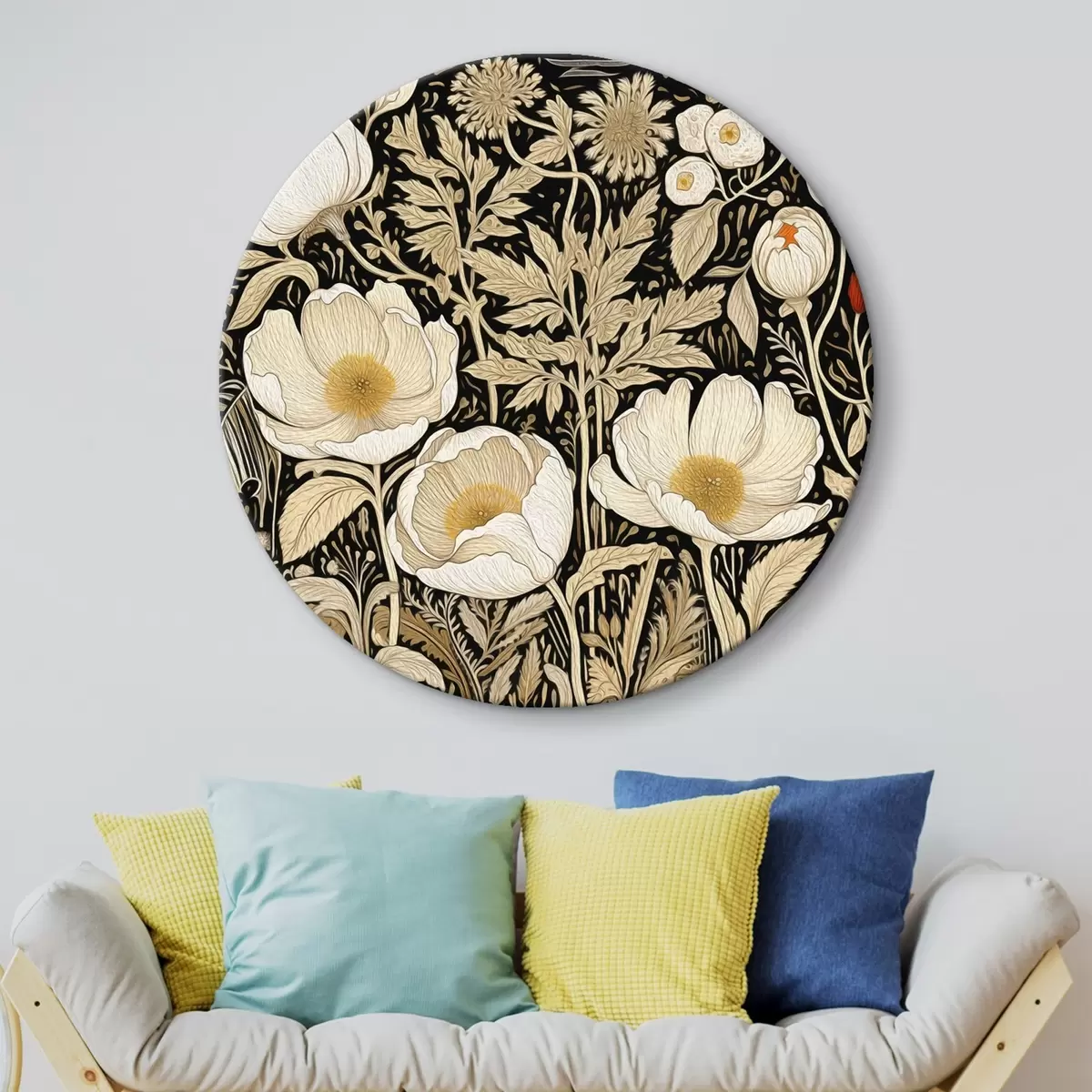Ronde schilderijen Crèmekleurige bloemen en grassen op een zwarte achtergrond Nr r45816