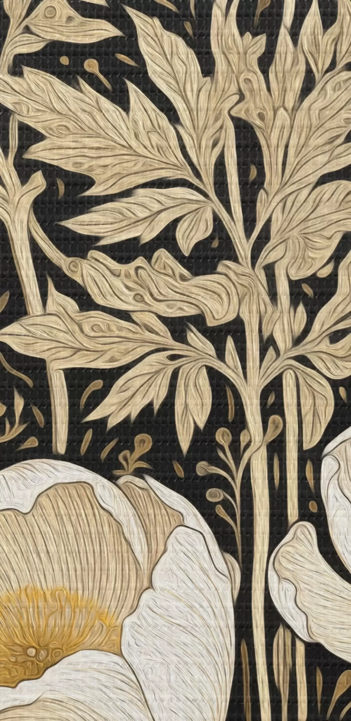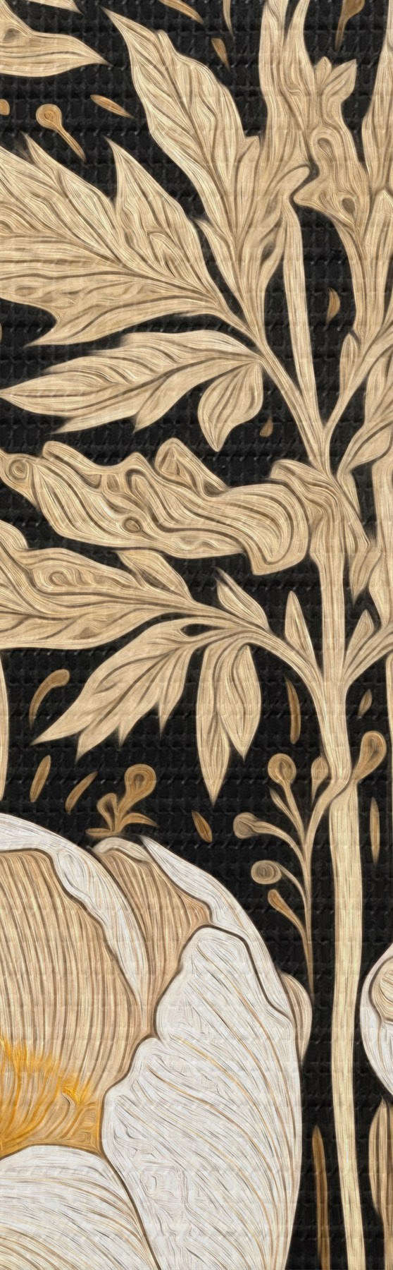 Ronde schilderijen Crèmekleurige bloemen en grassen op een zwarte achtergrond r45816