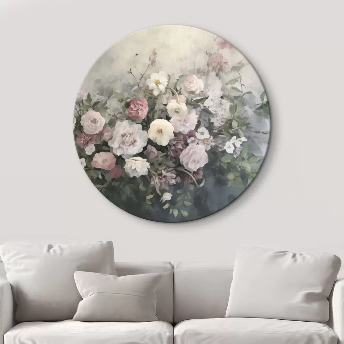 Ronde schilderijen Een romantisch boeket met roze en witte bloemen Nr r45817