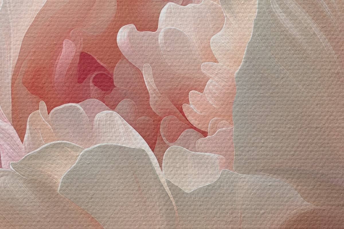 Ronde schilderijen Bloeiende pioenroos in roze en beige tinten r45825