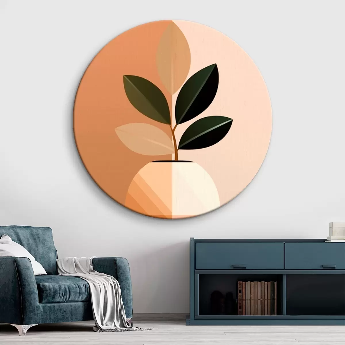 Ronde schilderijen Geometrische vaas met bladeren Nr r45833