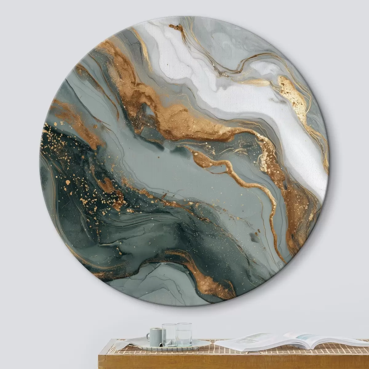 Ronde schilderijen Abstractie met donkergroene en grijze strepen Nr r45858