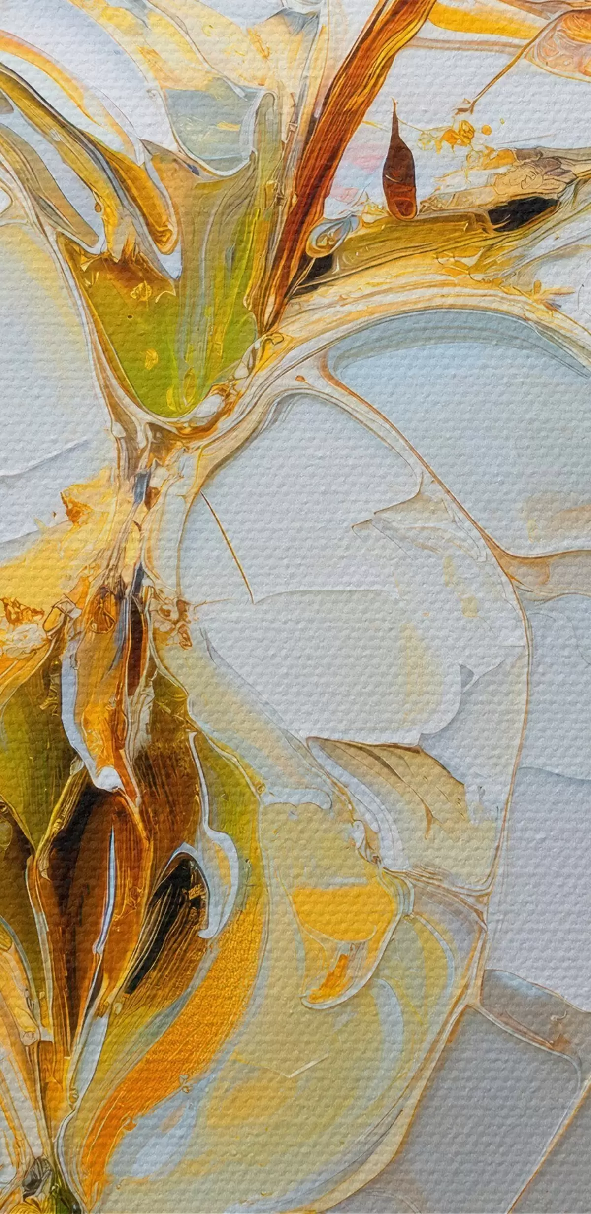 Het schilderij kan direct na ontvangst worden opgehangen. Het schilderij wordt opgespannen op een 2 cm breed houten spieraam.