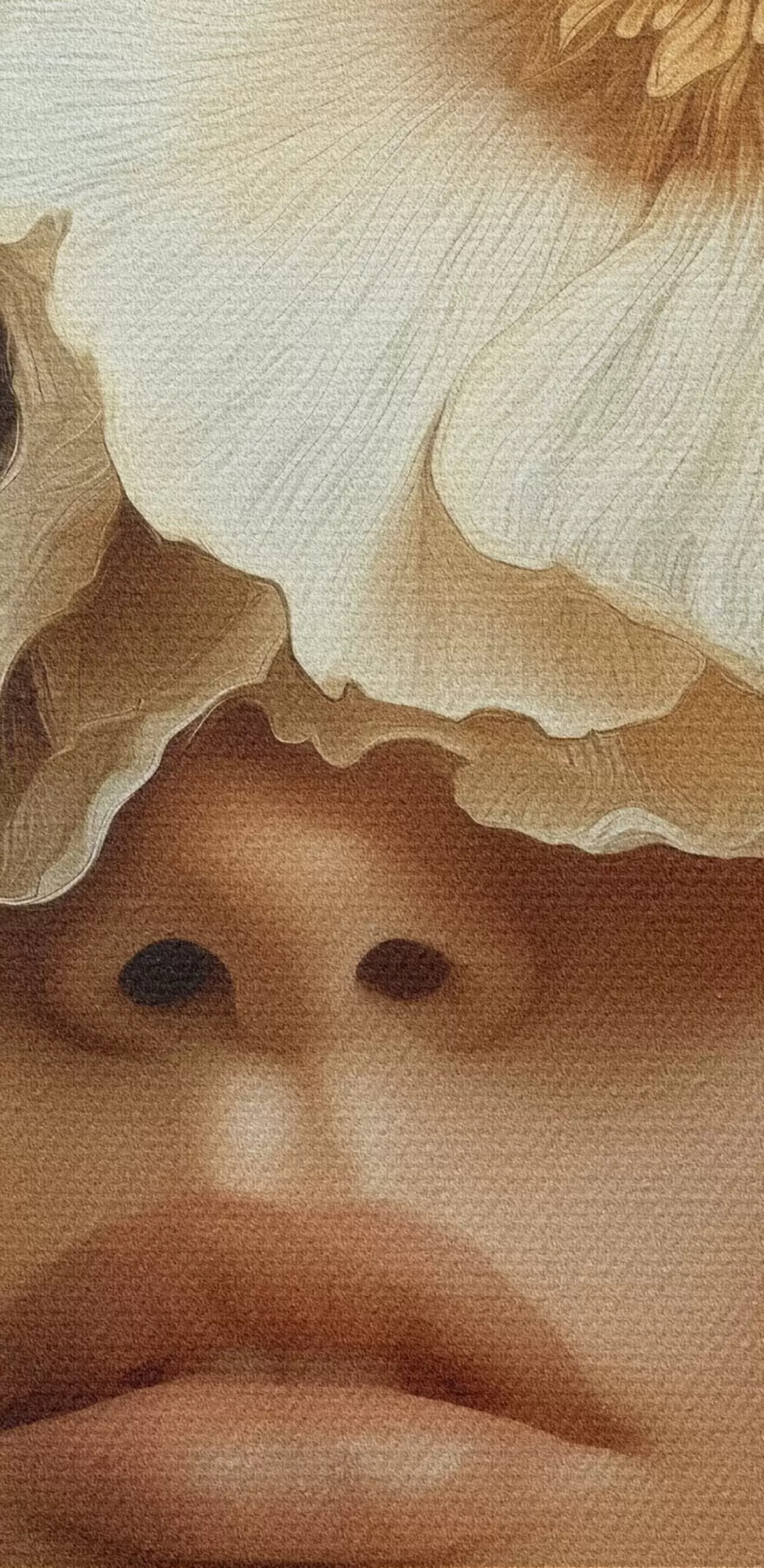 Ronde schilderijen Portret met beige bloemen die de ogen bedekken Nr r45870