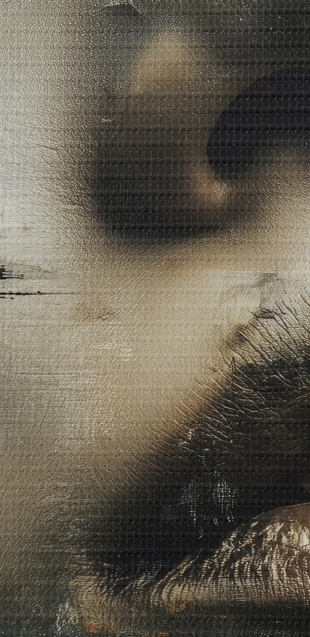 De fijne weving van draden op dit doek lijkt op het oppervlak van professionele schildersdoeken.