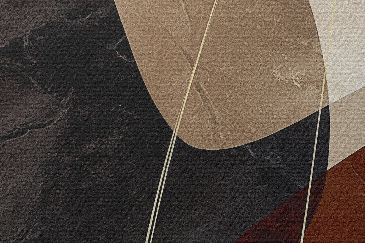 Ronde schilderijen Geometrische vormen in een warm kleurenpalet, fijne lijnen Nr r45879