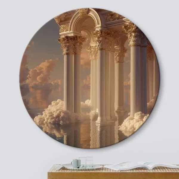 Ronde schilderijen Kolommen in de wolken, reflecties op het water Nr r45881