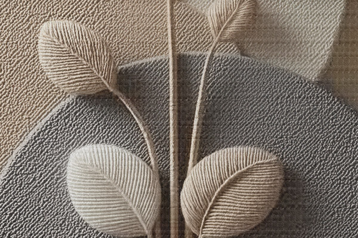 Ronde schilderijen Reliefcirkels en een tak in warme neutrale tinten Nr r45883