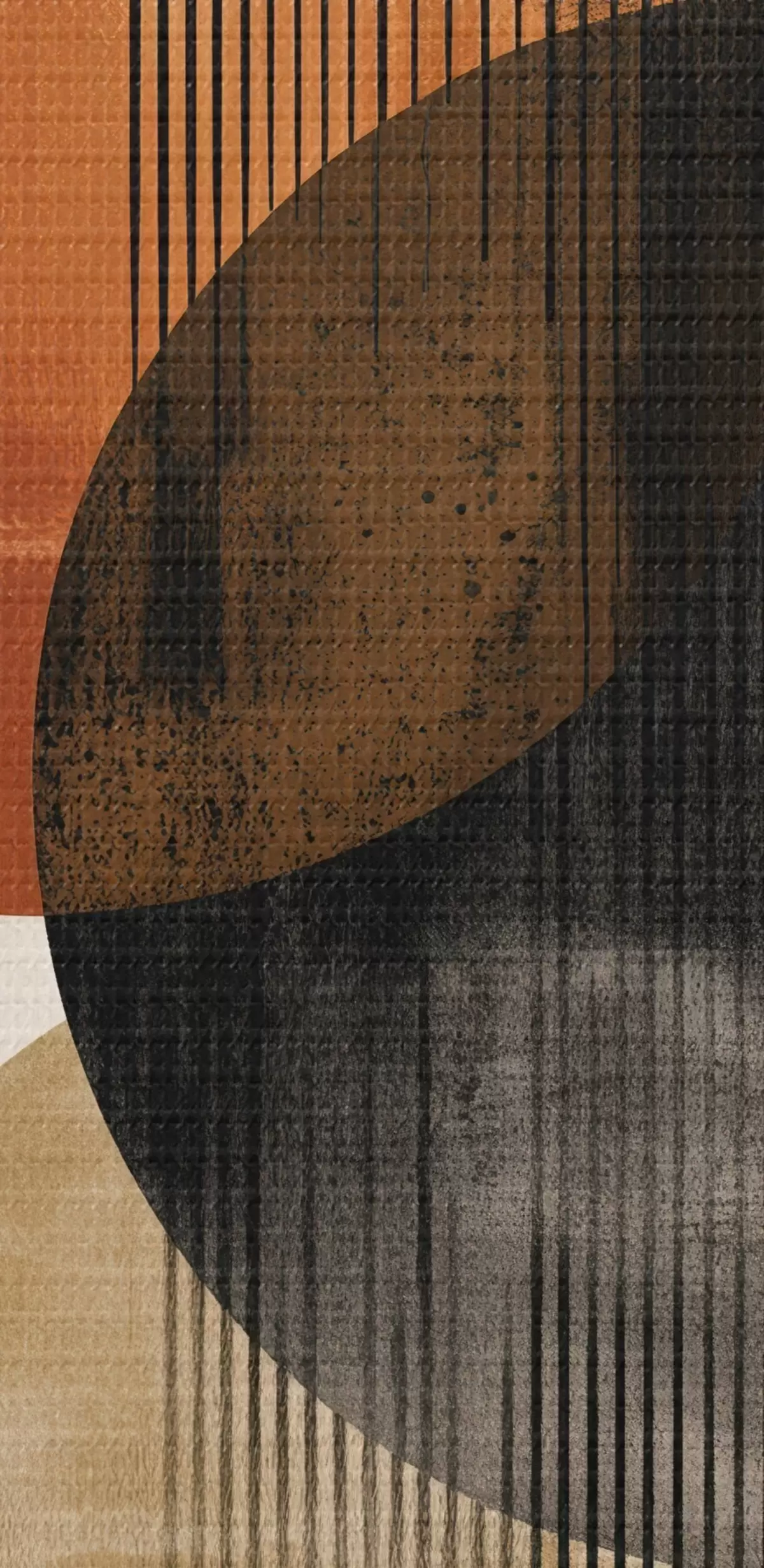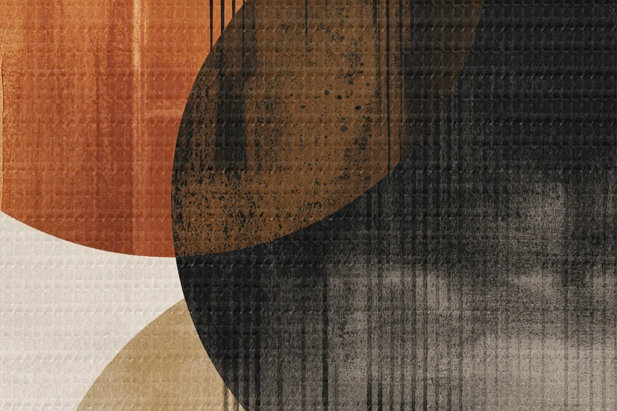 Ronde schilderijen Drie cirkels met textuur en lijnen in een terracotta-zwart kleurenpalet Nr r45885