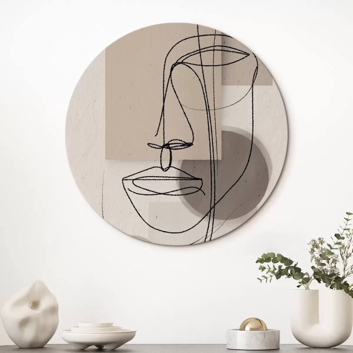 Ronde schilderijen Lijnportret boven beige geometrische vormen r45886